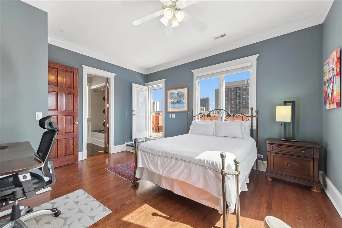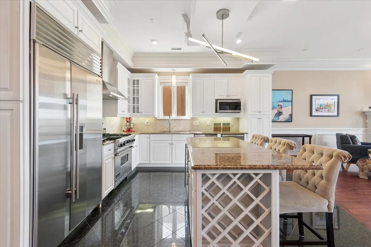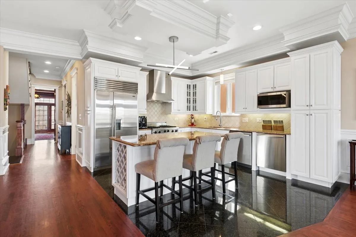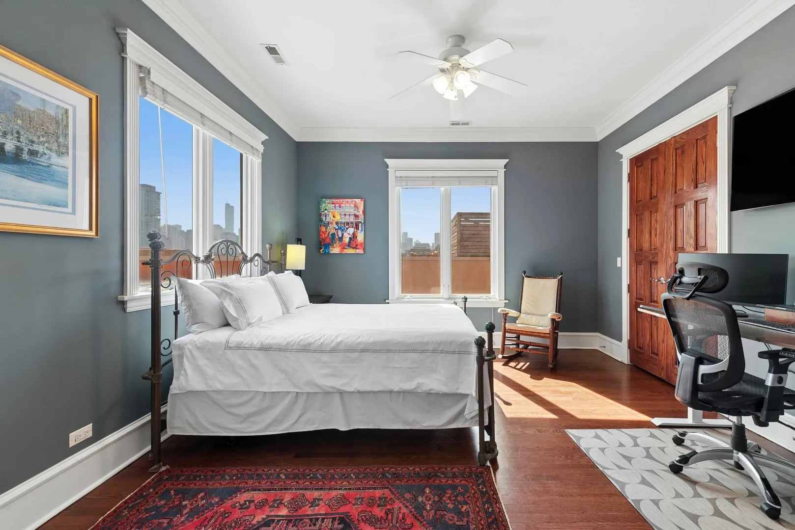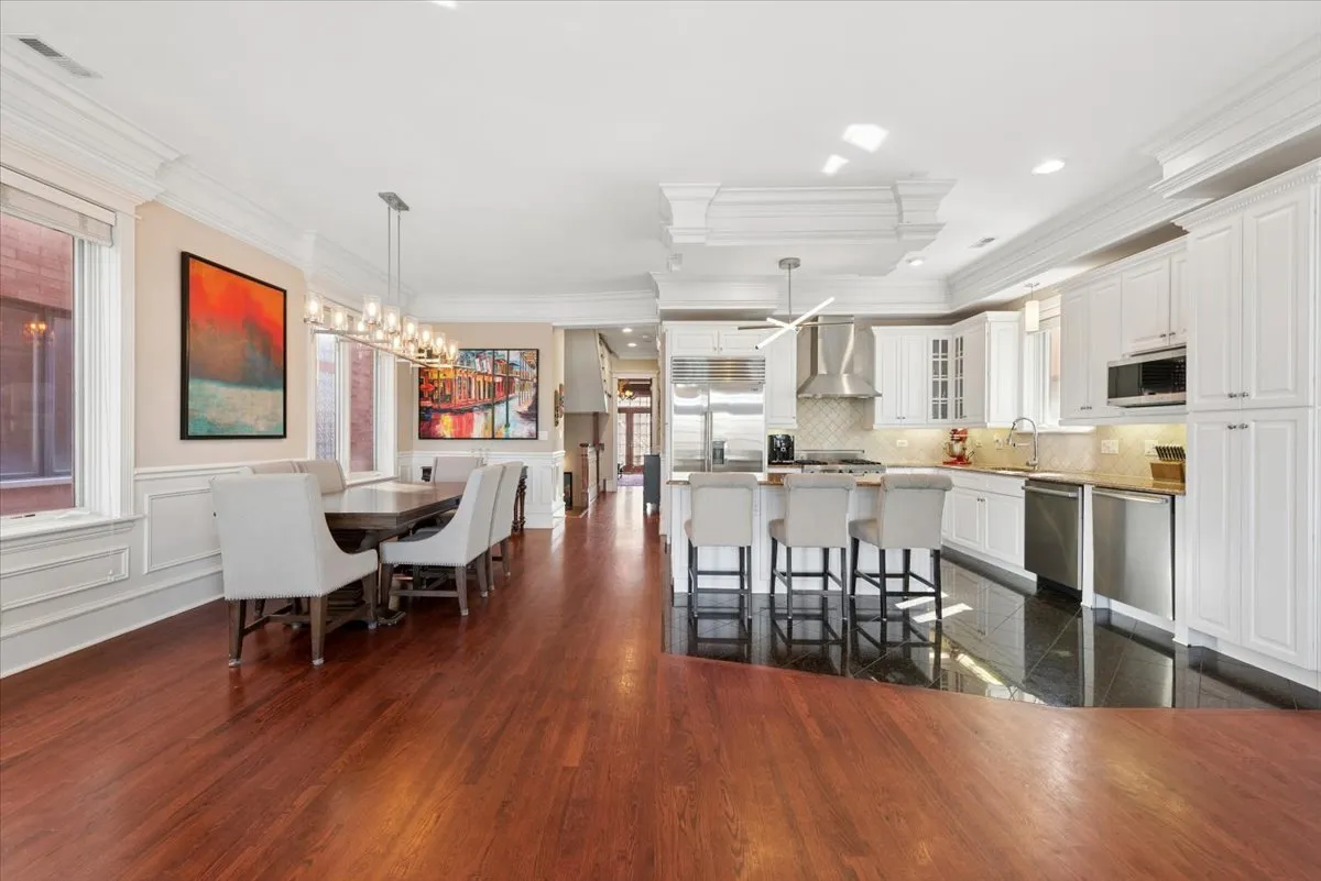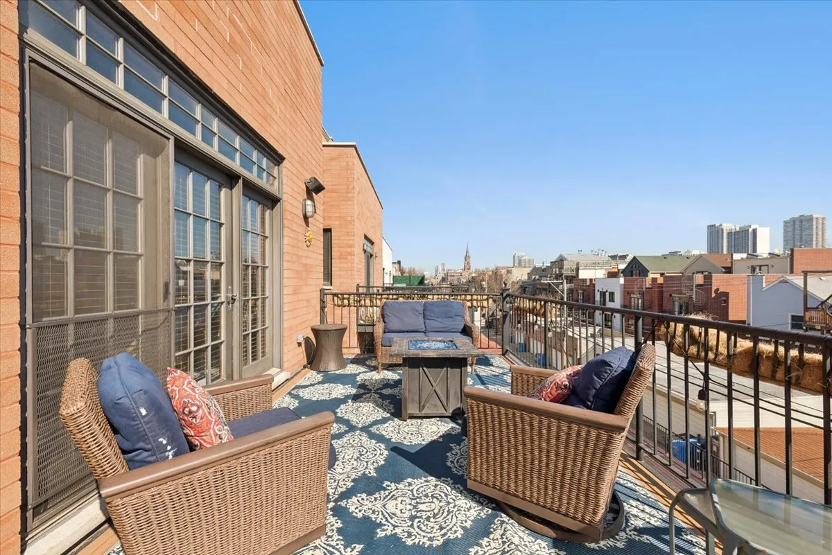 Three levels. Three terraces. One address that gets Old Town exactly right. 1359 N. Mohawk, Unit 4 is a duplex-up condominium that offers something increasingly rare in Chicago: generous scale with genuine architectural intention. At over 3,000 square feet across two living levels plus a private rooftop, every room here is sized to actually live in, not just to photograph well. The first level opens into a living room that runs 23 by 18 feet, anchored by a dining area and a kitchen designed for the way people actually entertain. A third primary suite on this level gives the home real flexibility, a guest suite, a family room, a studio, without compromise. Step out to the 24-foot deck, and you’re above the neighborhood in every sense. The second level is where the home distinguishes itself. Two additional en-suites, including a primary that spans 23 by 16 feet, share the floor with a library/bar space, complete with a wet bar, that signals how seriously this home takes how you spend your time at home. Closet space is exceptional throughout, with multiple walk-ins across all three suites. Above it all, the private rooftop deck finishes the story: a generous, recently laid Trex decking retreat with skyline access that belongs entirely to you. Old Town delivers the walkability, the architecture, and the neighborhood energy that the North Side does best. This address delivers the home to match.