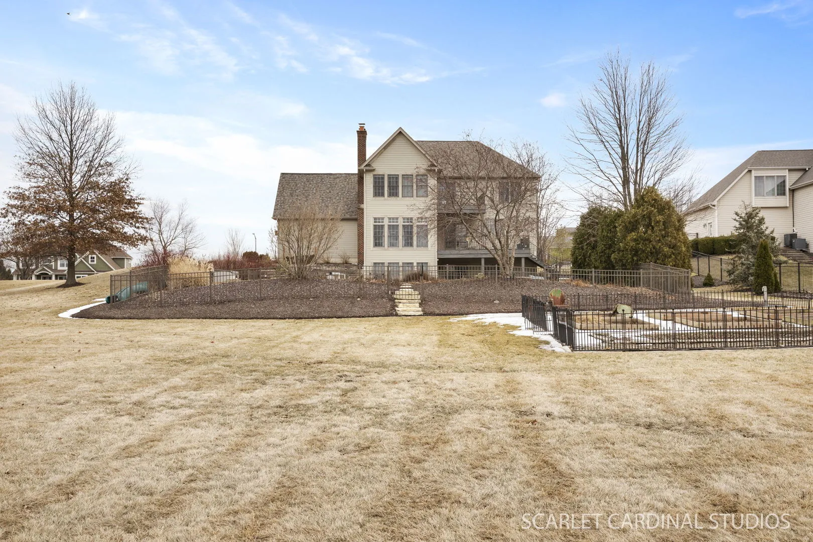 Set on approximately one acre in Yorkville’s Fields of Farm Colony subdivision, this expansive five-bedroom, 3.5-bath home offers over 3,700 square feet of living space, a three-car garage, and a walkout basement. A bright foyer opens to the living room and spacious dining room featuring updated designer lighting and a butler’s pantry connecting to the kitchen. The kitchen offers generous workspace, an eating area, and additional Anthropologie lighting while overlooking the backyard, walking paths, and surrounding natural landscape. The sunken family room features a fireplace and new carpeting (2025). The primary suite includes a large sitting area, private composite balcony with expansive views, a walk-in closet, and a bathroom with separate tub and multi-head walk-in shower. Four additional bedrooms provide comfortable space and storage. The walkout basement includes a fireplace box and bathroom rough-in, offering the opportunity for additional finished living space. Outdoor features include a two-story composite deck and a saltwater pool with an electric safety cover. Exterior improvements include new siding and roof completed in late 2025.