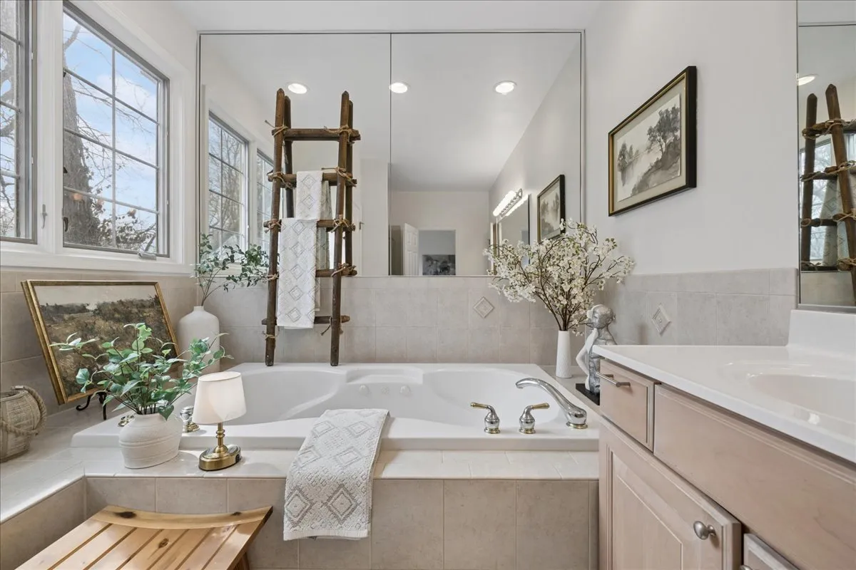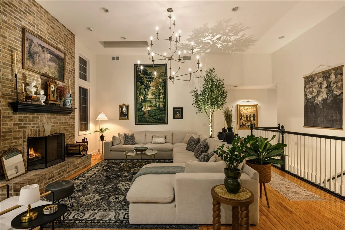 Tucked away on a quiet cul-de-sac on a rare expanded double lot with mature wooded surroundings and a long secluded driveway, this custom-built four-bedroom, four-bath ranch delivers exceptional privacy, scale, and livability just steps from the lake and neighborhood beaches. Recently enlarged by the current owner, the property creates one of the widest and most private homesites on the street, complemented by a welcoming wraparound front porch. The main living space showcases soaring 15-foot ceilings, hardwood floors, skylights, and a dramatic brick fireplace beneath a Currey & Company designer chandelier, with oversized windows framing wooded views and filling the home with natural light. The chef’s kitchen is remarkably expansive-designed for serious entertaining and everyday living-featuring a large center island, extensive cabinetry and storage rarely found in single-level homes, Sub-Zero refrigeration, double oven, brand new built-in wine fridge, warming drawer, new Bosch dishwasher, new Moen touchless faucet, two sinks – and direct access to the rear deck, to enjoy the outdoors! The primary suite offers cathedral ceilings, an oversized walk-in closet, and ensuite bath overlooking the woods and privacy. Two additional bedrooms and baths provide flexibility, with one enhanced by French doors and new chandelier – can be also for used as a private office. The finished lower level is the full main level footprint effectively doubling the home’s living space, featuring a second brick fireplace, oversized bedroom, full bathroom, recreation areas, and large bonus space, that can be finished for a gym or anything you desire. Additional recent updates include brand-new carpeting in all bedrooms, stairs, and basement, a freshly repainted interior, and a new washer and dryer-offering a clean, updated, and truly move-in ready experience throughout the home. Exterior upgrades include refreshed landscaping around the entire property, a custom wood mailbox, and premium raindrop gutters. With no HOA restrictions, permitted fencing, and a buildable second lot suitable for a guest house or pool, this is a rare opportunity to own expansive single-level living in sought-after Village of Lakewood-ranches of this scale and proximity to the lake, beaches and Doles farmer’s market and community center seldom come to market. Enjoy an amazing lifestyle in a charming home!