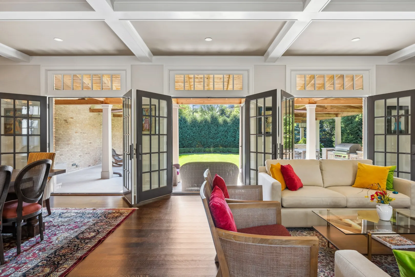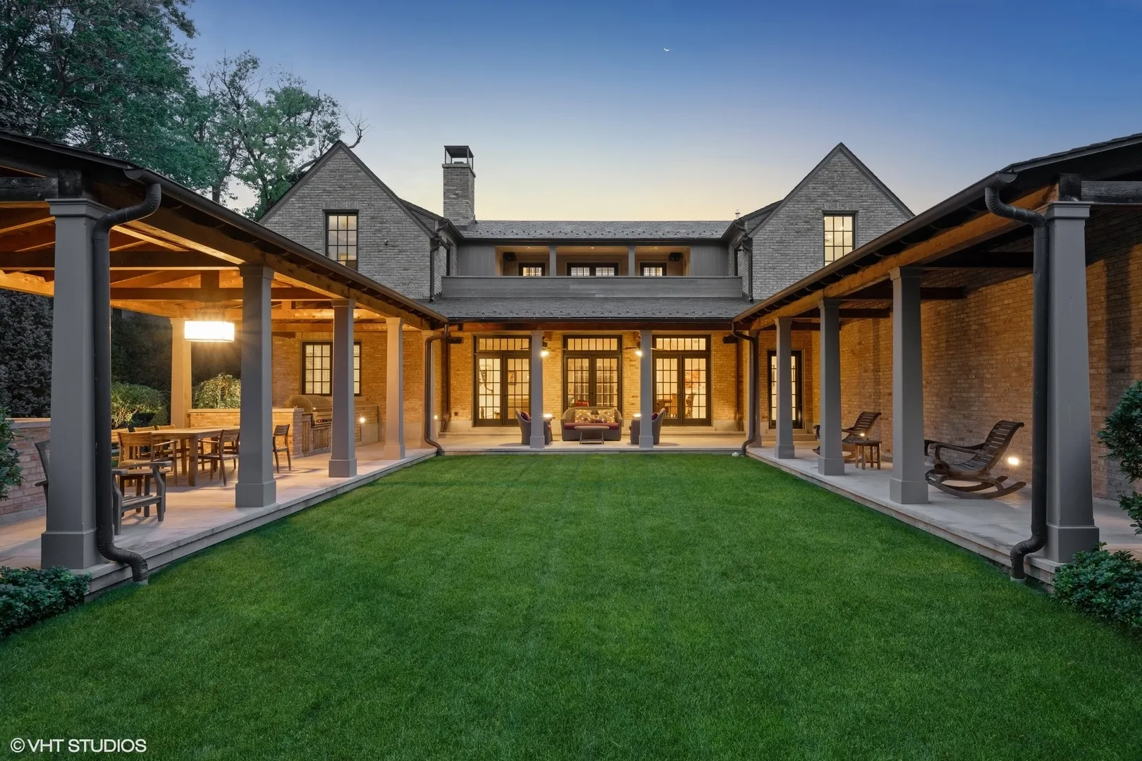 Custom built in 2015 and meticulously maintained, this Highland Park residence offers a refined and elegant combination of architectural design, structural integrity, and everyday functionality, just steps from Lake Michigan. Designed by Northworks Architects and constructed by Schmidt & Hageland Builders, the home reflects a thoughtful focus on long-term durability and performance. Construction includes a brick exterior, steel beam framing, iron-infused concrete, open web truss joists, cast iron plumbing for reduced sound transmission, and closed-cell foam insulation for energy efficiency. A slate roof, heated gutters, and integrated ice-melt systems further support year-round function. A comprehensive security and camera system by Bulldog Security is installed throughout, and a fire sprinkler system is installed in the basement. The layout is organized around a central interior courtyard, which brings consistent natural light into the surrounding living spaces and establishes a clear architectural focal point. Two additional exterior courtyards, one adjacent to the kitchen and one larger outdoor space, provide three distinct outdoor environments that support both daily use and entertaining. The outdoor spaces are designed for both everyday use and entertaining, including a covered outdoor dining area with a built-in Wolf grill and sink. Integrated Crestron audio extends across the backyard, upper terrace, interior courtyard, and kitchen-adjacent courtyard, creating a cohesive indoor-outdoor living experience. The home includes six bedrooms, six full bathrooms, and three half baths. Circulation is supported by a private elevator and dual staircases, allowing for efficient movement throughout. Interior finishes include 5-inch wide-plank brown oak hardwood floors throughout the main living areas and professionally coordinated interior design elements that create continuity across the home’s scale. The kitchen is designed for both function and capacity, featuring a large quartzite island, full-height custom cabinetry, and professional-grade appliances by Wolf, Sub-Zero, and Miele, including a range, steam oven, warming drawer, wok burner, separate refrigerator and freezer, and two dishwashers. Additional refrigeration is located in the basement and garage, along with an additional dishwasher in the lower level. The home was designed to accommodate a range of living arrangements, including guest use, multigenerational needs, and work-from-home flexibility, while maintaining separation between public and private spaces. The professionally landscaped grounds provide a private, garden-like setting and include an integrated irrigation system. The location offers close proximity to Central Park, downtown Highland Park, Metra access, and the lakefront. Offered As-Is, the property has been professionally inspected, with inspection-related items addressed, and showcases a well-prepared, move-in-ready opportunity. This represents a rare opportunity to acquire a custom-built home of this quality and construction at a level that would be impossible to replicate at the current offering price.