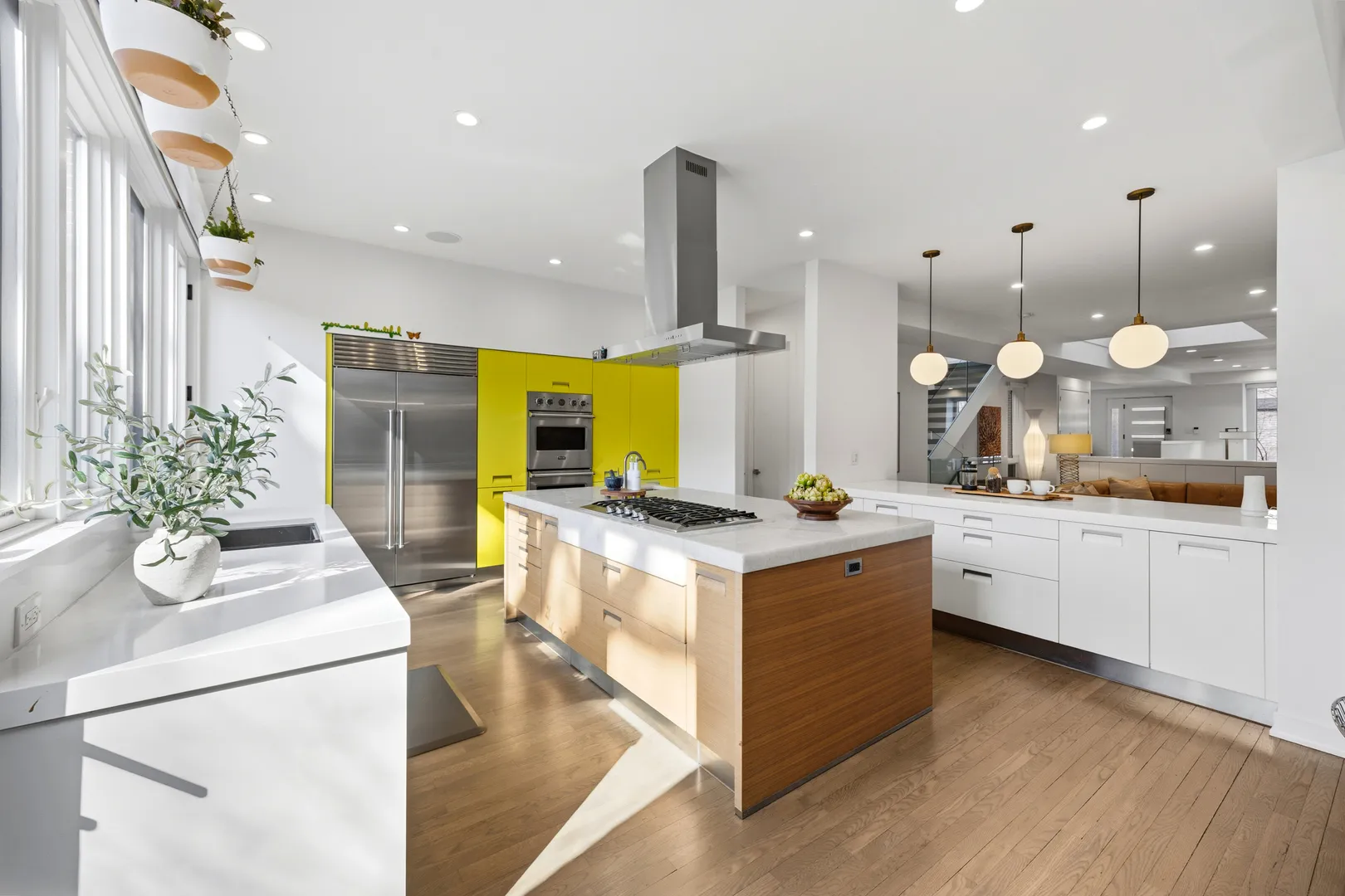 Set on coveted Surrey Court in Lincoln Park, this exceptional 5+ bedroom residence sits on an oversized 30′ x 140′ lot, maintaining its original extra-wide footprint. The home is the result of a deeply intentional redesign, where the current owners invested in a fully customized transformation-creating a seamless dialogue between 4500+ sqft of interior & 2500+ sqft of exterior living that evolves with the seasons. Rooted in the architectural pedigree of renowned Chicago architect Marcel Freides, originally reimagined in 2016 by Mastro & Skylar, and elevated to the next level in 2022 by Jaffe Architecture in co-collaboration with designers VerStraight Design and Nanette Mortel, the residence blends timeless design with modern luxury and meticulous craftsmanship. Perfectly positioned to capture sunlight from every angle, an incredible number of expansive windows invite natural light and gentle breezes to flow throughout the home, while framing views of the beautifully matured landscape from every level. Sunlight pours into every level through a dramatic 25-foot skylit atrium showcasing a sculptural contemporary open-riser staircase that anchors the home. A formal living room, generous dining area for 16, plus a cozy family room off the kitchen create versatile spaces for living and entertaining. The Arclinea Italian oversized kitchen features large dining area and a convenient office nook-perfect for a household hub. Features include Cristallo Quartzite countertops, a double-thick island, top-tier Viking, Sub-Zero, and Miele appliances. The lower-level family room is thoughtfully positioned above average grade, featuring oversized windows and a glass wall of double doors that cascade to a bluestone patio and grassy yard, continuing the home’s intentional balance of indoor and outdoor living. Upstairs, four bedrooms are filled with natural light, while the primary suite offers vaulted ceilings, spa bath, and serene treetop views. Outdoor living is further enhanced by a private rooftop deck with IPE decking, fully equipped outdoor kitchen, gas fireplace, integrated planting beds, and complete privacy-no neighboring rooftop decks in sight. Professionally designed landscaping, mature plantings, and bluestone hardscaping complete the home’s grounds. Mechanical systems and appliances are thoughtfully updated, including newer HVAC units, roof, and hot water tanks, along with recently serviced kitchen appliances, ensuring comfort and efficiency throughout the home. Located within the Oscar Mayer School District on an idyllic, tree-lined street, this one-of-a-kind residence combines architectural pedigree, meticulous craftsmanship, and a seamless connection between interior and outdoor living