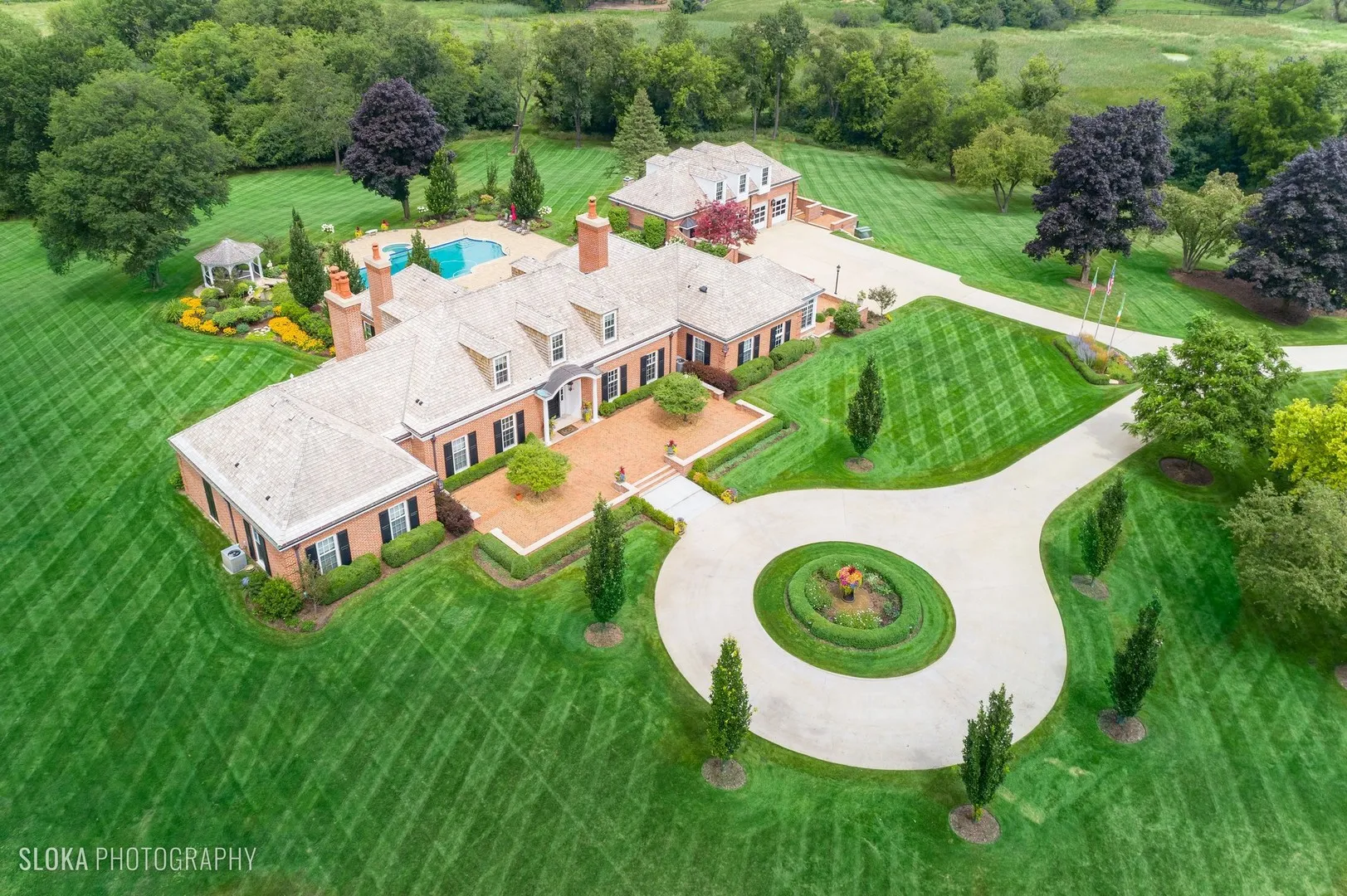 Welcome to your own private resort-set on over 25 lush, rolling acres in prestigious Barrington Hills. This extraordinary estate, 17 years in the making, blends timeless elegance with resort-style living and endless potential to create an equestrian estate or simply a private sanctuary. From the moment you arrive, you’re greeted by a sense of serenity and grandeur. Thoughtful architectural details define the home, including rich walnut trim, custom plaster crown moldings, herringbone hardwood floors, and five fireplaces that add warmth and charm throughout. The outdoor spaces are truly a showpiece-lushly landscaped and designed for relaxation and recreation. A sparkling in-ground pool, expansive stone patio, built-in firepit, and elegant gazebo offer a luxurious setting for entertaining or unwinding in nature. The grounds also include a built-in grill in the sunroom for year-round al fresco dining. Whether you’re hosting summer soirees or enjoying a quiet evening under the stars, this property lives like a five-star retreat. And for those with equestrian dreams, the acreage offers the perfect canvas to create a world-class horse property. There’s ample space for barns, paddocks, and riding trails-all surrounded by the natural beauty and privacy Barrington Hills is known for. Inside, the home offers equally impressive living and entertaining spaces: a dramatic two-story entry with dual bridal staircases, soaring ceilings in the living room, a formal dining room with butler’s pantry, and a richly appointed study. The chef’s kitchen and breakfast room are a daily delight, with panoramic views of the grounds. The first-floor primary wing is a private sanctuary with dual spa-like baths, oversized walk-in closets, and a dedicated office. Upstairs, two spacious bedroom suites each feature ensuite baths and double walk-ins. The walkout lower level is packed with amenities-an oversized rec room, a fitness studio, wine cellar, sauna, and even a hidden passageway for a touch of whimsy. A separate heated four-car garage includes a charming one-bedroom, 1.1-bath guest house-perfect for extended family, guests, or a live-in caretaker. This is more than just a home-it’s a lifestyle. Secluded yet just minutes from downtown Barrington, Metra, shopping, dining, and award-winning District 220 schools. A rare opportunity to own a true retreat, with all the makings of a luxury equestrian estate.