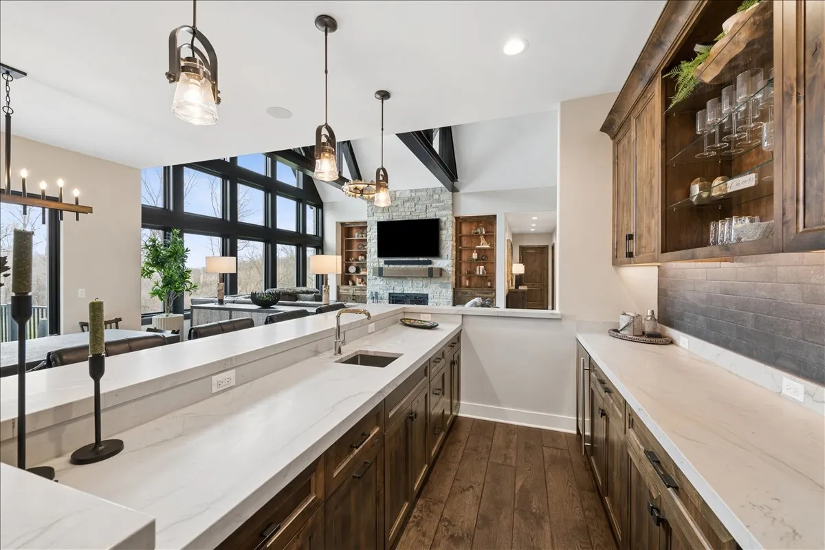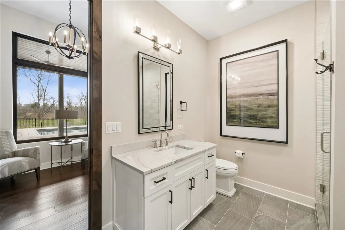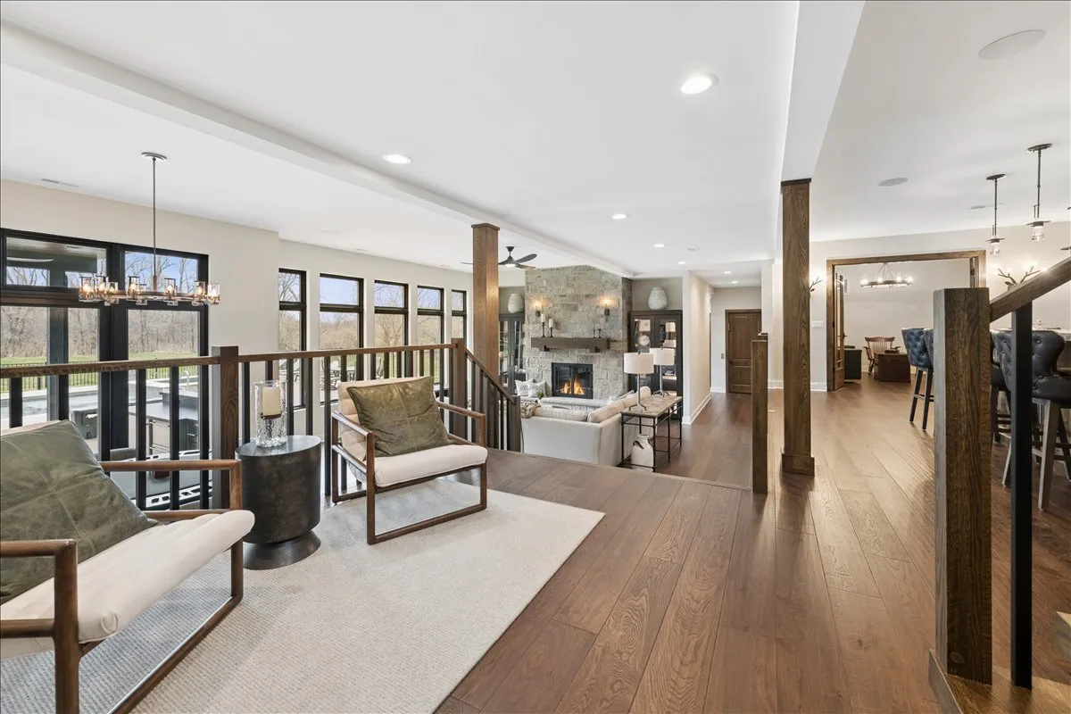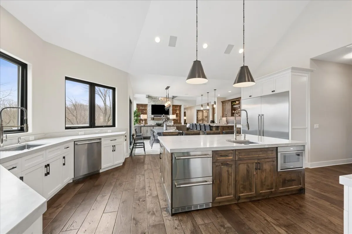 This exceptional custom-built estate, completed in 2022, sits on 2.25 private acres and is designed to impress at every turn. Offering 4 bedrooms and 4.1 bathrooms, the home showcases meticulous craftsmanship, premium materials, and a layout ideal for both everyday living and large-scale entertaining. Highlights include a dramatic vaulted living room with custom steel beams, wide-plank hand-scraped oak floors, and a chef’s kitchen with Thermador appliances, oversized island, walk-in pantry, multiple dining areas, and a full bar setup. The main-level primary suite is a true retreat with spa-inspired bath, heated floors, soaking tub, and dual walk-in closets. Additional features include a three-season room with fireplace, elevator access to all levels, heated 4-car garage with extensive storage, and a lower-level entertainment space with bar, cigar room, guest bedrooms, and full bath. Luxury living extends outdoors with a heated saltwater Gunite pool and spa, covered patio with bar, professional landscaping, and even a private 3-hole golf course. Surrounded by wooded views and protected land, this one-of-a-kind property offers rare privacy, luxury, and lifestyle.