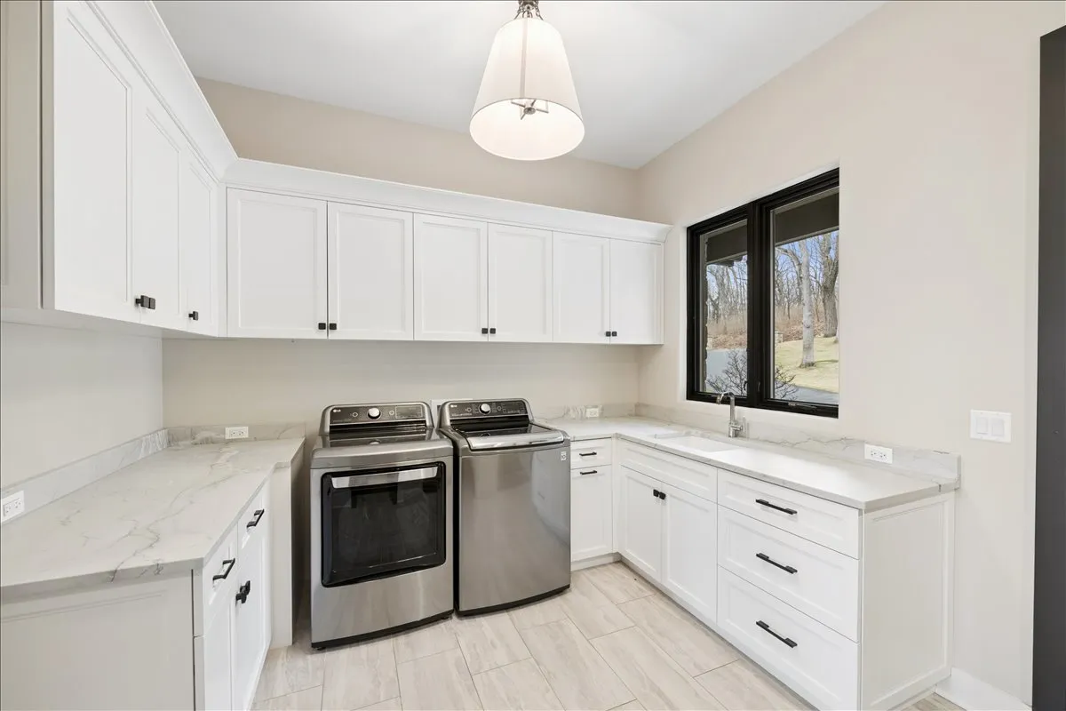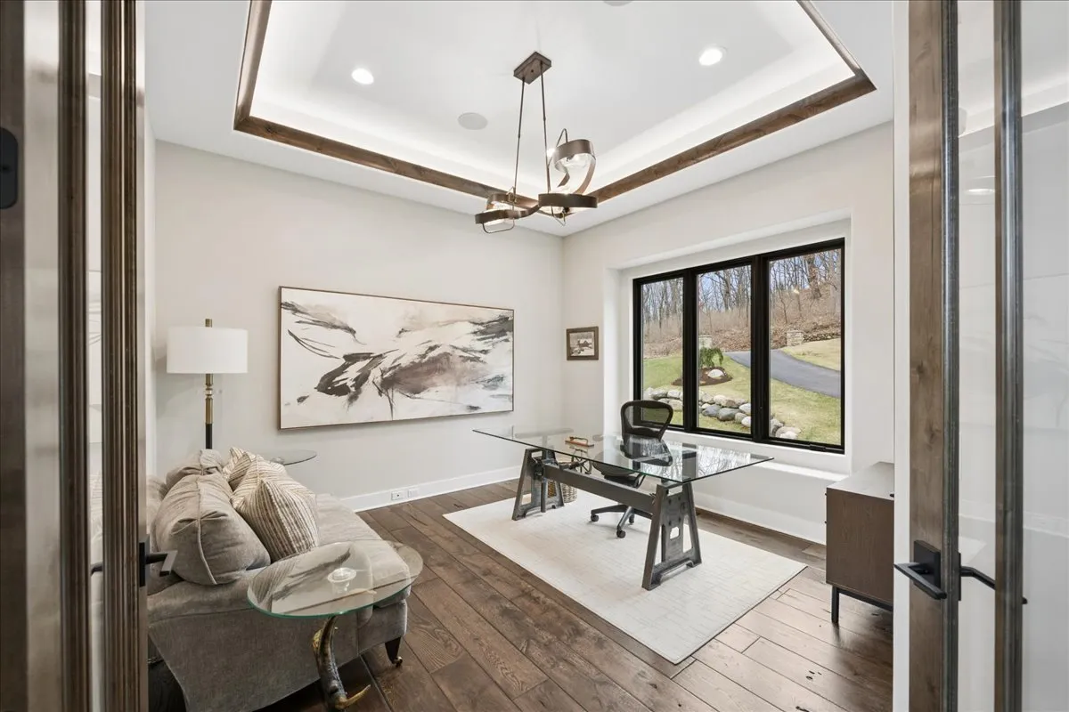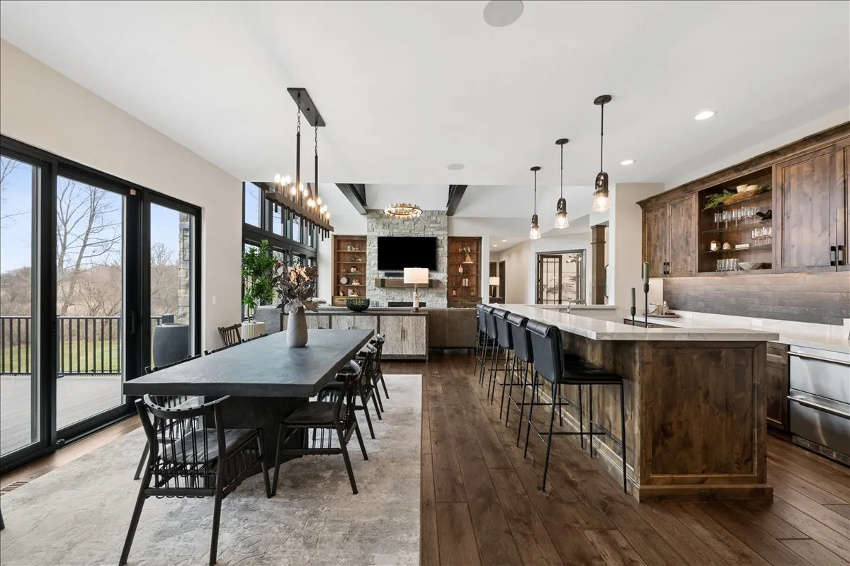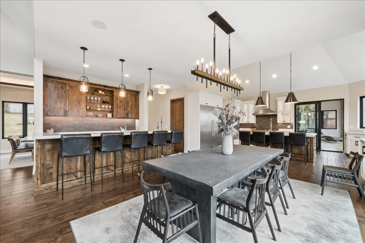 This exceptional custom-built estate, completed in 2022, sits on 2.25 private acres and is designed to impress at every turn. Offering 4 bedrooms and 4.1 bathrooms, the home showcases meticulous craftsmanship, premium materials, and a layout ideal for both everyday living and large-scale entertaining. Highlights include a dramatic vaulted living room with custom steel beams, wide-plank hand-scraped oak floors, and a chef’s kitchen with Thermador appliances, oversized island, walk-in pantry, multiple dining areas, and a full bar setup. The main-level primary suite is a true retreat with spa-inspired bath, heated floors, soaking tub, and dual walk-in closets. Additional features include a three-season room with fireplace, elevator access to all levels, heated 4-car garage with extensive storage, and a lower-level entertainment space with bar, cigar room, guest bedrooms, and full bath. Luxury living extends outdoors with a heated saltwater Gunite pool and spa, covered patio with bar, professional landscaping, and even a private 3-hole golf course. Surrounded by wooded views and protected land, this one-of-a-kind property offers rare privacy, luxury, and lifestyle.