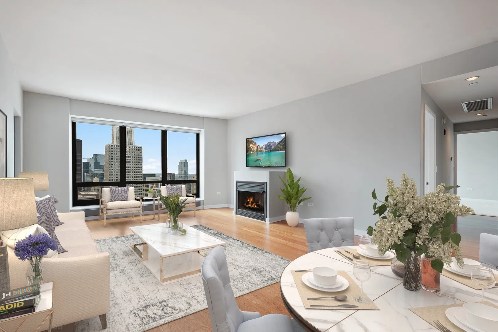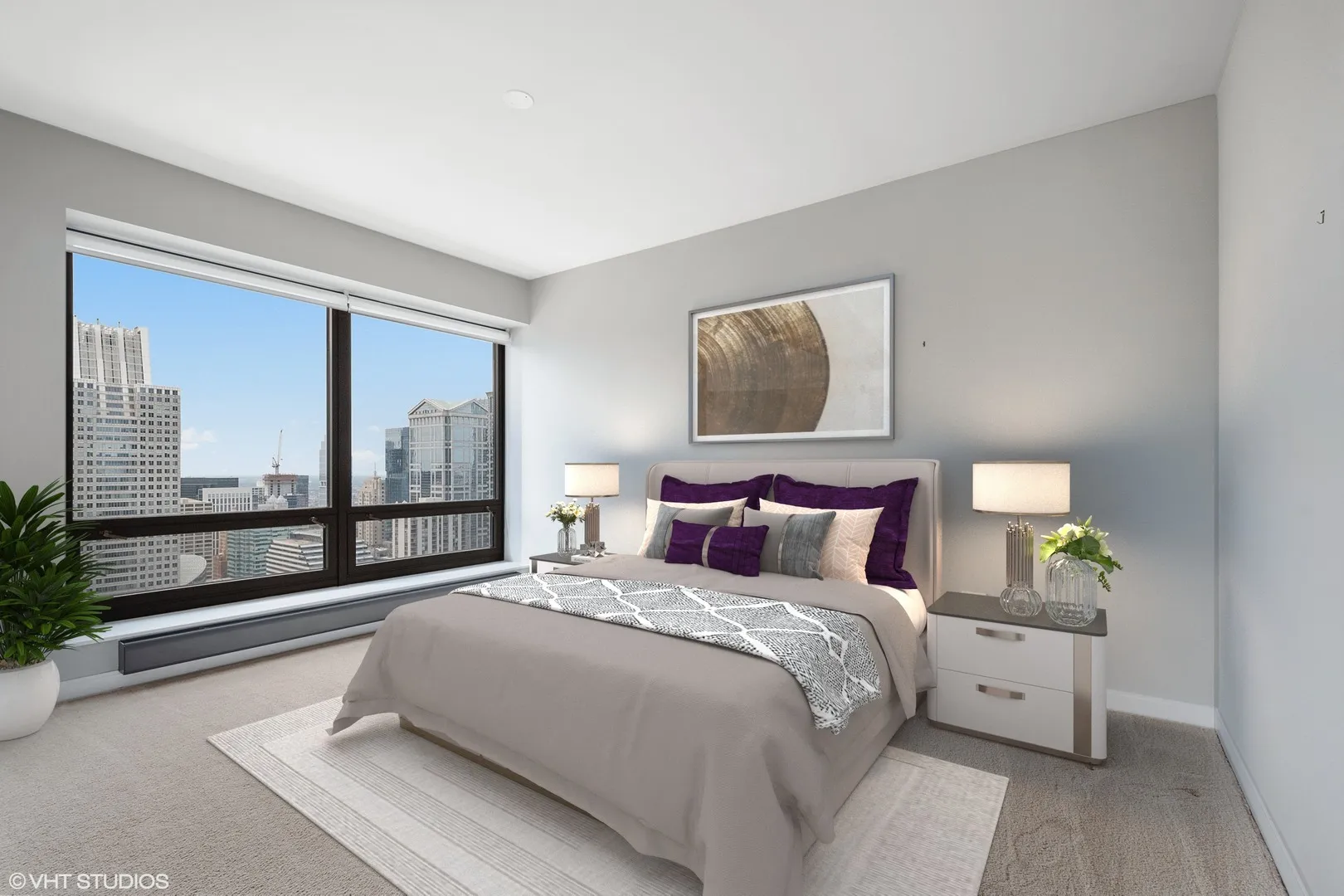 Exquisite High-Rise Living at The Heritage at Millennium Park Experience unparalleled elegance in this stunning 49th-floor 3 Bedroom, 2 Bath, 1,800 Sq.Ft, corner residence, boasting breathtaking west-facing views of Chicago’s iconic skyline and unforgettable sunsets. This custom-designed home exudes sophistication, featuring soaring 9.5 ft. ceilings with recessed lighting, an elegant ventless gas fireplace, and floor-to-ceiling windows that flood every room with natural light while showcasing mesmerizing city views. Step onto your private balcony and indulge in the beauty of Chicago’s golden hour, with a front-row seat to the city’s dazzling skyline. Exceptional Home Features: Gourmet Kitchen: 42″ custom wood cabinetry, granite countertops, built-in professional-grade appliances, and a sleek, modern design perfect for culinary enthusiasts. Primary Suite Retreat: Spacious walk-in California Closets, stunning city views, and a spa-inspired ensuite bath with granite finishes, a Jacuzzi tub, and a separate walk-in shower. Spacious Guest Bedrooms: Ample closet space and breathtaking views. Laundry Room: In-unit side-by-side washer & dryer for ultimate convenience. Five-Star Building Amenities: Indulge in luxury with full-service amenities, including: 24-hour doorman & on-site management, Indoor pool, Jacuzzi, and fitness center, Elegant party room & terraces with stunning city and lake views Dog run, storage locker, and private Pedway access to shopping, dining, and entertainment and Expansive outdoor garden terrace with breathtaking vistas of Lake Michigan & Millennium Park Prime Location – The Best of Chicago at Your Doorstep Nestled in the heart of the city, this premier residence is steps from Millennium Park, Maggie Daley Park, the lakefront trail, Chicago Cultural Center, Art Institute, Goodman Theatre, and more. Storage space. ADDITIONAL PRIVATE DEEDED PARKING SPOT AVAILABLE FOR $25,000. Discover the pinnacle of luxury living-schedule your private tour today!