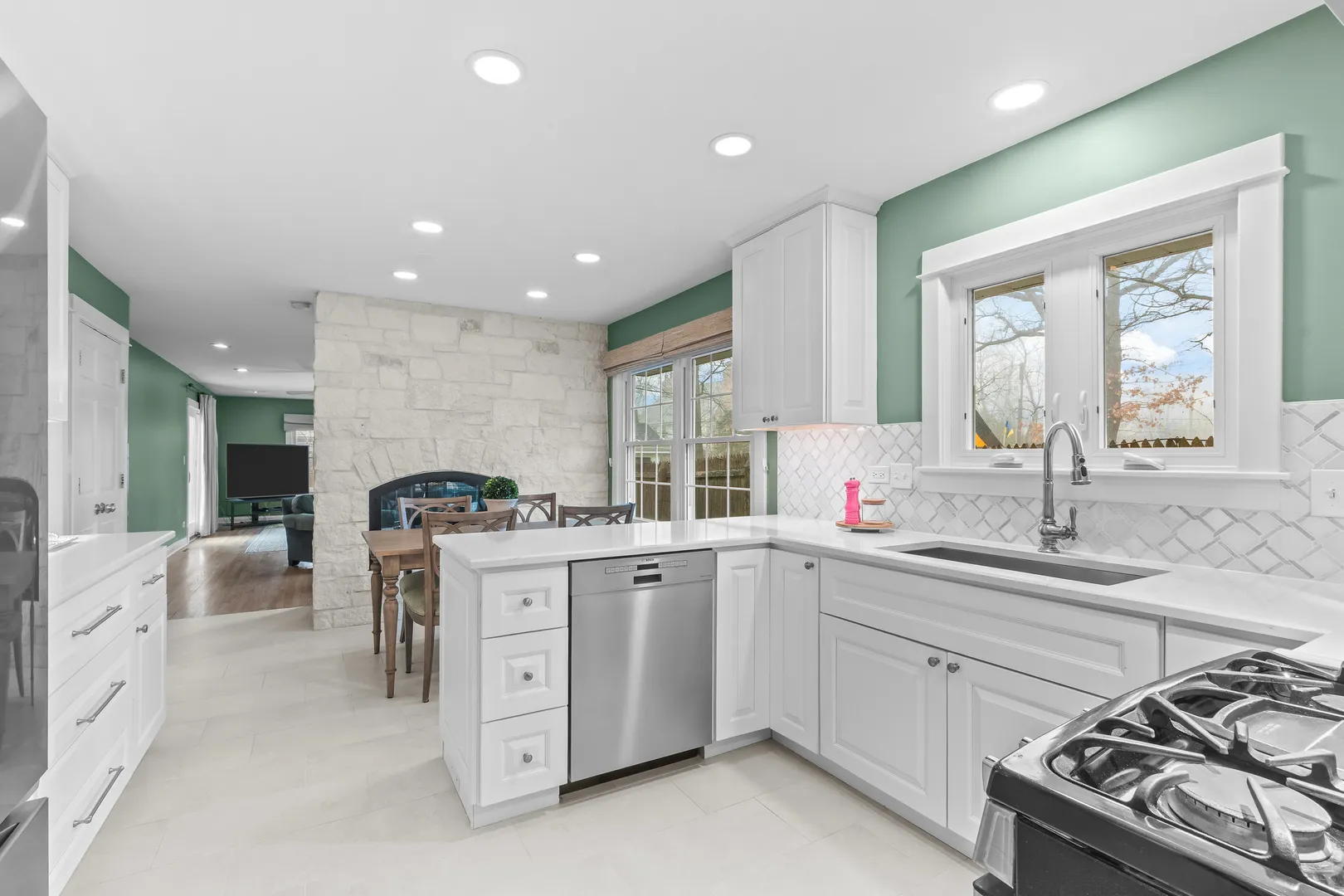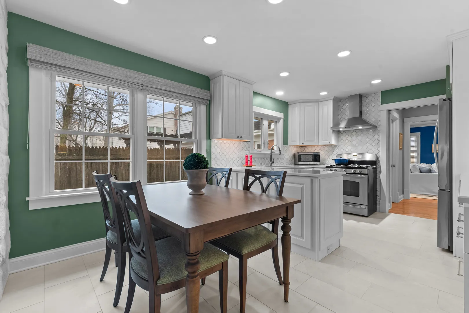Location is everything here. Just a short walk to Lake Forest High School and Sheridan Elementary School, with the lakefront and downtown Lake Forest an easy bike ride away, this is a setting that’s hard to replicate. The home is a classic center entry Colonial with a welcoming front porch, set on a half-acre lot. A circular driveway adds convenience and provides ample off-street parking opportunities. Inside, the layout is comfortable and well-proportioned. On one side of the foyer is a generously sized living room, anchored by a gas fireplace and a large bay window overlooking the front yard, on the other is the formal dining room. The eat-in kitchen was completely renovated in 2022, down to the studs and new wall insulation. It’s bright and thoughtfully finished with white cabinetry, quartz countertops, a tile backsplash, and stainless steel appliances, including the range, refrigerator, dishwasher, and microwave. At the center of the home is a striking double-sided stone fireplace with custom doors, connecting the kitchen and family room. One side serves the breakfast area, while the other creates a cozy seating space within the family room. The main portion of the family room offers plenty of room to gather, and sliding glass doors open to a paver patio and fully fenced backyard. Upstairs, is the primary suite with a large walk-in shower, plus three additional well-sized bedrooms. The hall bath has just been updated with porcelain tile, a white vanity, and a tub/shower with tile surround and glass enclosure. Additional highlights include hardwood floors throughout, newer windows, updated window coverings, a new front door, new porcelain tile on the front porch, newer washer and dryer, and new ceiling fans in the bedrooms. The interior has also been freshly painted in most rooms, and the roof was replaced in 2012. A large side yard creates a park-like setting-ideal for throwing a football, kicking a soccer ball, or just enjoying the extra space. Homes with this combination of location, updates, and lot size rarely become available at this price point. Private showings will begin on Monday April 6th.