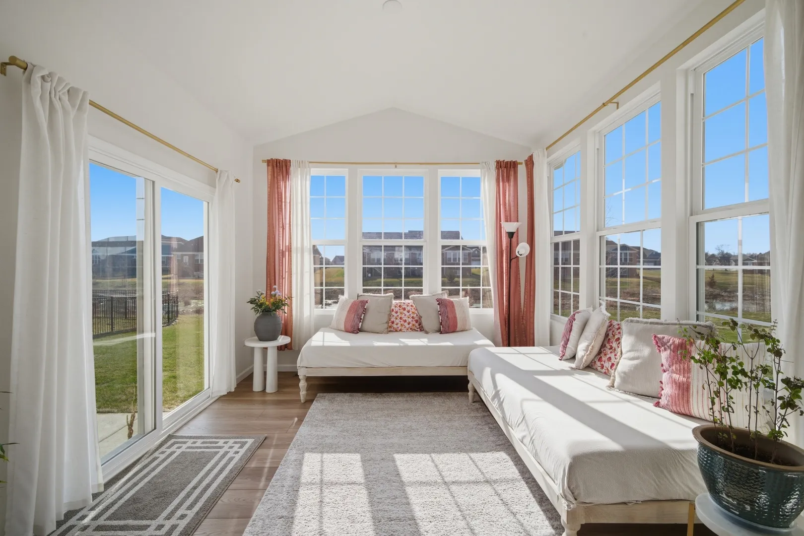 Do not miss an opportunity to own a beautiful newer construction home in highly sought after Gleneagles in Lemont! Situated on a premium quarter-acre, pond-facing lot, this Riverton model home built by reputable Pulte features 4 large bedrooms, 2.5 baths, a sunroom, two first-floor offices, a planning center/homework station, a second-floor loft, and a full unfinished basement. Functional open floor plan features 9′ ceilings, overhead can lighting, and wide plank vinyl flooring. This leads you to the spacious kitchen, which offers 42″ white shaker cabinetry with gold accents and a sleek subway style backsplash, large island with quartz countertops and breakfast bar seating, a large undermount single basin sink, stainless steel Whirlpool appliances, a Samsung side by side fridge, and a convenient pantry closet. The sunroom has vaulted ceilings and is flooded with western facing natural light. From there, you can step out to the concrete patio overlooking the backyard and pond. Modern wrought iron staircase takes you upstairs to find a cozy loft space, laundry room with front loading washer/dryer and utility sink, an ensuite guest bedroom, and two other large guest bedrooms each with walk in closets. The spacious primary suite includes a custom walk-in closet, dual vanity, and private bath. Full unfinished basement has 9′ ceilings, egress windows, and rough plumbing for an additional bathroom, ready for your ideas. Also included is an added water softener with filtration, and a reverse osmosis system for clean drinking. The two-car drywalled garage offers extra storage space for lawn equipment, and comes upgraded for electric vehicle charging. Incredible Lemont school district, near downtown Lemont and Metra station, famous Cog Hill Country Club, and easy expressway access.