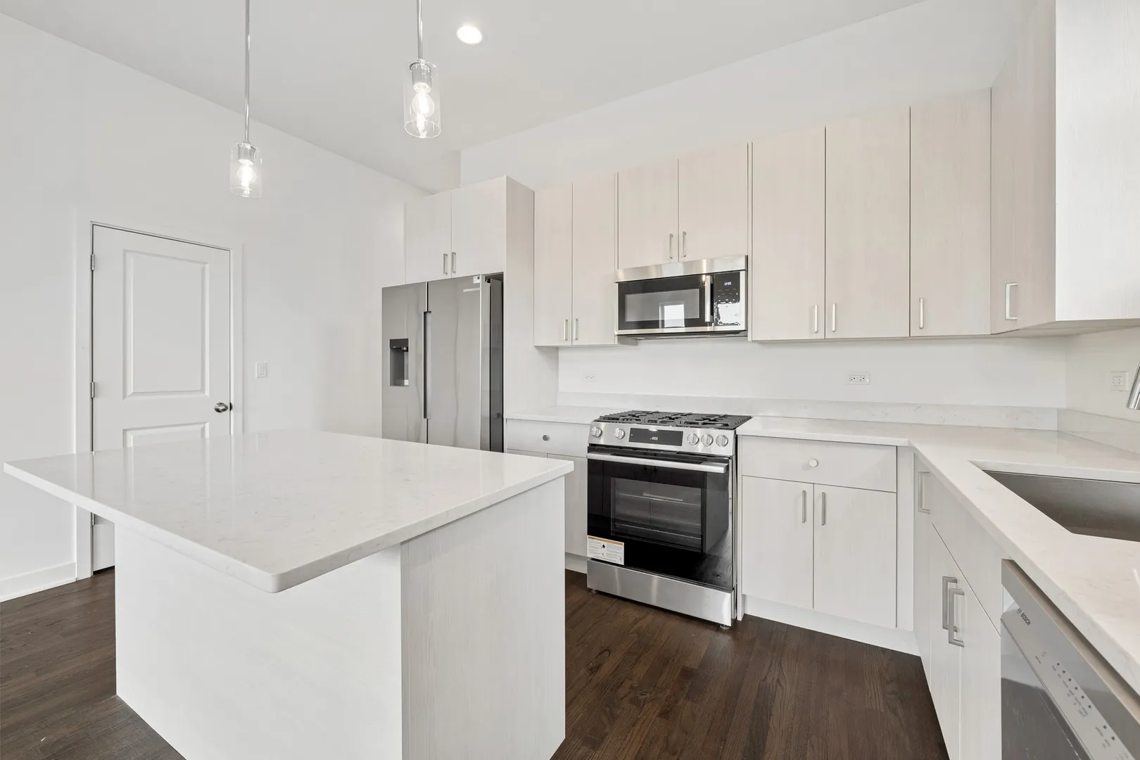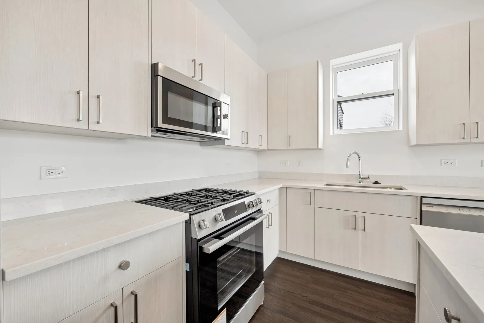 Brand New Rehabbed Bright and spacious 3bd 2ba second floor unit available in West Town for flexible lease start date. Walk up building. Unit features open kitchen, spacious living room/dining room combo with private balcony space off the living. Hardwood flooring throughout. 9 foot ceilings. Custom Italian cabinetry w Quartz counter tops. Stainless Steel appliances. Primary bedroom features glass shower and soaking tub. Plenty of additional storage in unit. One secured storage closet on ground level included in rent. Stackable full size washer/dryer in unit. Central air and Heat forced air. Garage parking $200/mo. One time pet deposit of $350.00. No Sec Deposit. One Time Admin Fee of $800 will apply. $40/m utility package- covers water, sewer and trash. $50.00 app fee per applicant. Available Now!