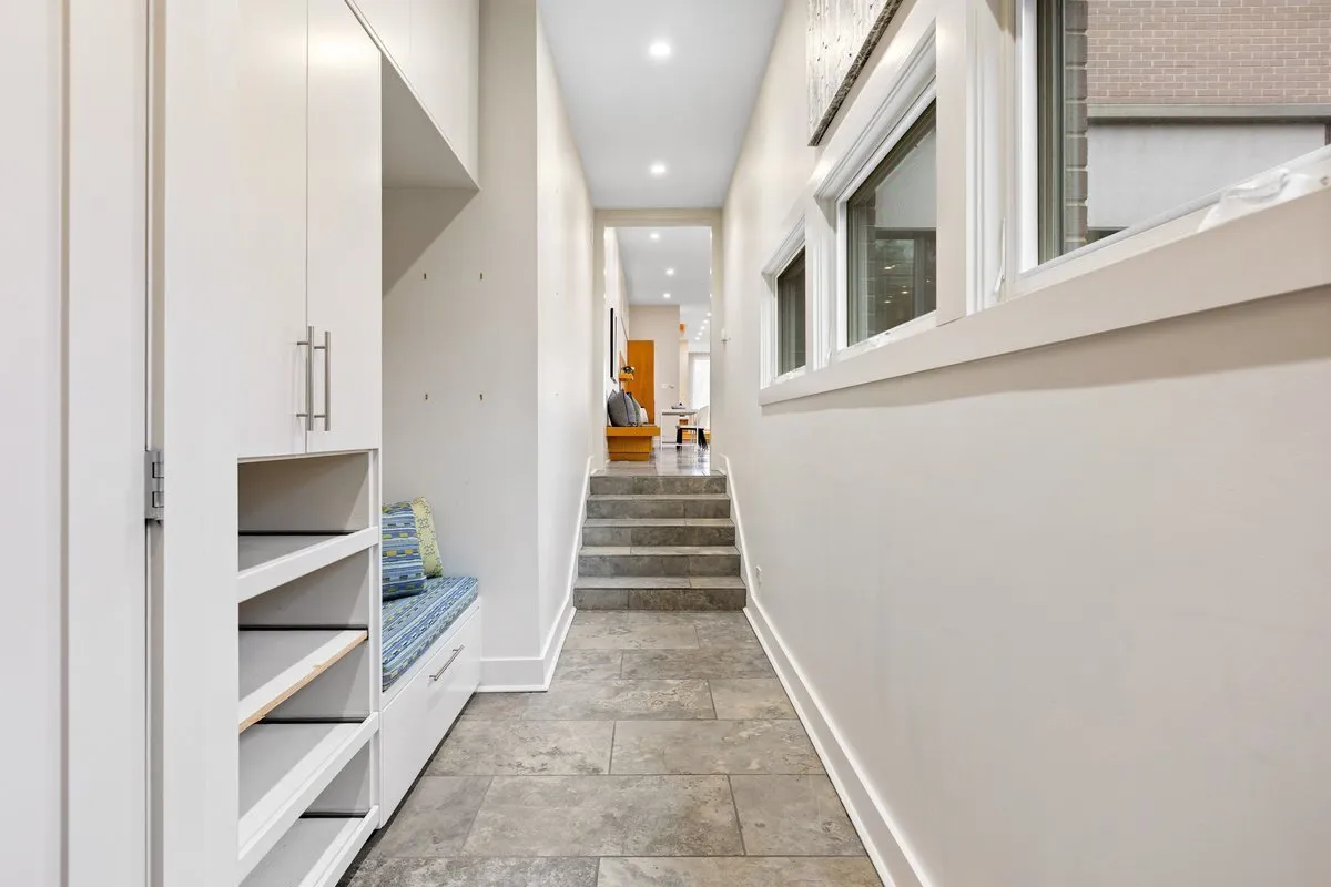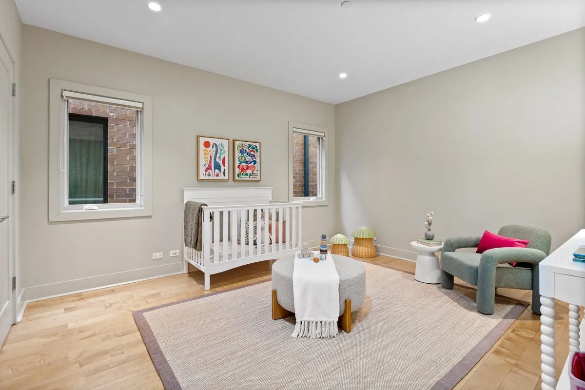 A masterful expression of contemporary design, this all-brick Environs residence sits on a wide 30′ lot along one of Bucktown’s most coveted blocks. Unique features include a dramatic two-story foyer, 5-inch quartersawn maple floors, custom railing sets, and a sun-filled living room with a fireplace. The contemporary kitchen features custom anegre cabinetry, a 48″ Sub-Zero refrigerator, Dacor double ovens and a 48″ cooktop, Bosch dishwasher, Fisher & Paykel dishwasher drawers, integrated wine refrigeration, a walk-in pantry, and a built-in breakfast nook. The expansive great room, highlighted by soaring 14′ ceilings and a fireplace, opens effortlessly to an exquisitely landscaped patio, perfect for seamless indoor/outdoor entertaining, with direct access to the garage rooftop. A breezeway/mudroom with built-in storage and seating connects to the attached, heated three-car garage. The second level offers a luxurious primary suite with three walk-in closets and a spa-inspired bath featuring heated floors, illuminated mirrors, an oversized shower, and a soaking tub. Two additional bedrooms each feature en-suite baths, complemented by a full laundry room. The sun-drenched top-floor penthouse retreat includes a wet bar and a powder room and opens to a spectacular rooftop deck with breathtaking views. The lower level is equally impressive, offering a generous recreation room, wine cellar, wet bar, heated floors, and two additional bedrooms, one currently styled as a private fitness studio. Ideally positioned near the 606 Trail, I-90/94, Metra, Churchill and Walsh Parks, and Bucktown’s premier boutiques and dining, this exceptional residence delivers luxury living at its finest.