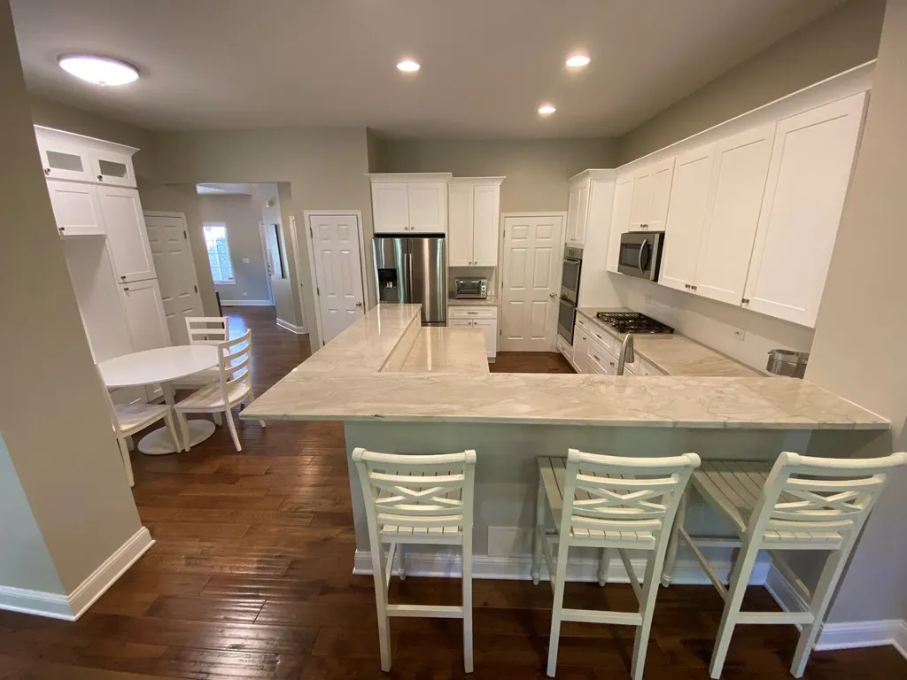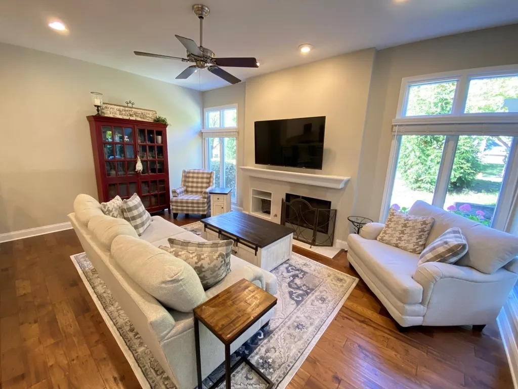 A true STAND OUT from the rest and everything to LOVE!!! “Maintenance free” living! LUXURY Duplex (with charming front porch and pergola covered patio) is located in the Stonebridge community and highly acclaimed Naperville School District 204! Upon entering you’ll experience the flair of tasteful finishes, quality improvements and a spectacular OPEN concept floor plan that easily flows from one room to another! Impressive 2-story entrance continues into the formal dining room and 2-story living room which features a dramatic wall of windows (bringing the outside in)! Your culinary adventures await you in this gorgeous remodeled kitchen complete with: white 42″ Shaker style soft-close cabinetry (accented w/crown molding and brushed nickel hardware), granite countertops, subway tile backsplash, under-mount sink, wrap-a-round breakfast bar, recessed lighting, all stainless steel appliances (+) double oven, large pantry closet AND separate breakfast area (characterized w/custom built-in cabinets, glass displays and built-in seating). Adjacent family room brings with it a cozy fireplace and 9′ ceiling! Lovely remodeled laundry room takes the word “chore” out of doing laundry and is equipped w/front load washer/dryer, granite countertop, under-mount sink and built-in cabinets! Stunning hand-scraped hardwood floors (on main level and 2nd level hallway) and the attractive hardwood staircase (with custom newels and iron balusters) lead upstairs. The 2nd level provides 3 large bedrooms and 2 full bathrooms. The vaulted primary suite (beyond SWEET!) features a 16×6 walk-in closet while its spa-like bath provides nothing but luxury with its double bowl vanity (comfort height), separate water closet, separate shower and Jacuzzi tub (this space is truly a sanctuary where you can rest, recharge and escape from your work life!). Bedroom #2 is vaulted while Bedroom #3 offers a large walk-in closet and is connected to the secondary bath. The re-designed finished basement is even more of a reason to fall in love with this home and includes a recreation room, 4th bed w/barn style doors, full bath and convenient storage areas! Experience relaxed living on all 3 levels (over 3,100 sq ft of finished living space)! Brooks Elementary and Granger Middle School are located within the subdivision. Metea Valley HS, Rte 59 train station and I88 are all less than 5 minutes away. Take advantage of the many restaurants, shopping and parks the area provides. OTHER HIGHLIGHTS INCLUDE: White 6-panel door/trim package; Irrigation system; Roof/Gutters (2015); Kitchen, breakfast area built-in, appliances, laundry room, staircase, basement, baths, flooring, painting, statement lighting (2018); Rear storm door, 2nd floor bath tile/paint, Furnace (2023); Washing machine (2024); Primary bedroom + walk-in closet carpet, Refrigerator (2025); Hot Water Heater (2026). Super close to the clubhouse! Optional/private Stonebridge Country Club memberships are available (not included with the monthly HOA dues or quarterly assessment). This is not just a home. It’s a lifestyle. One of the best.
