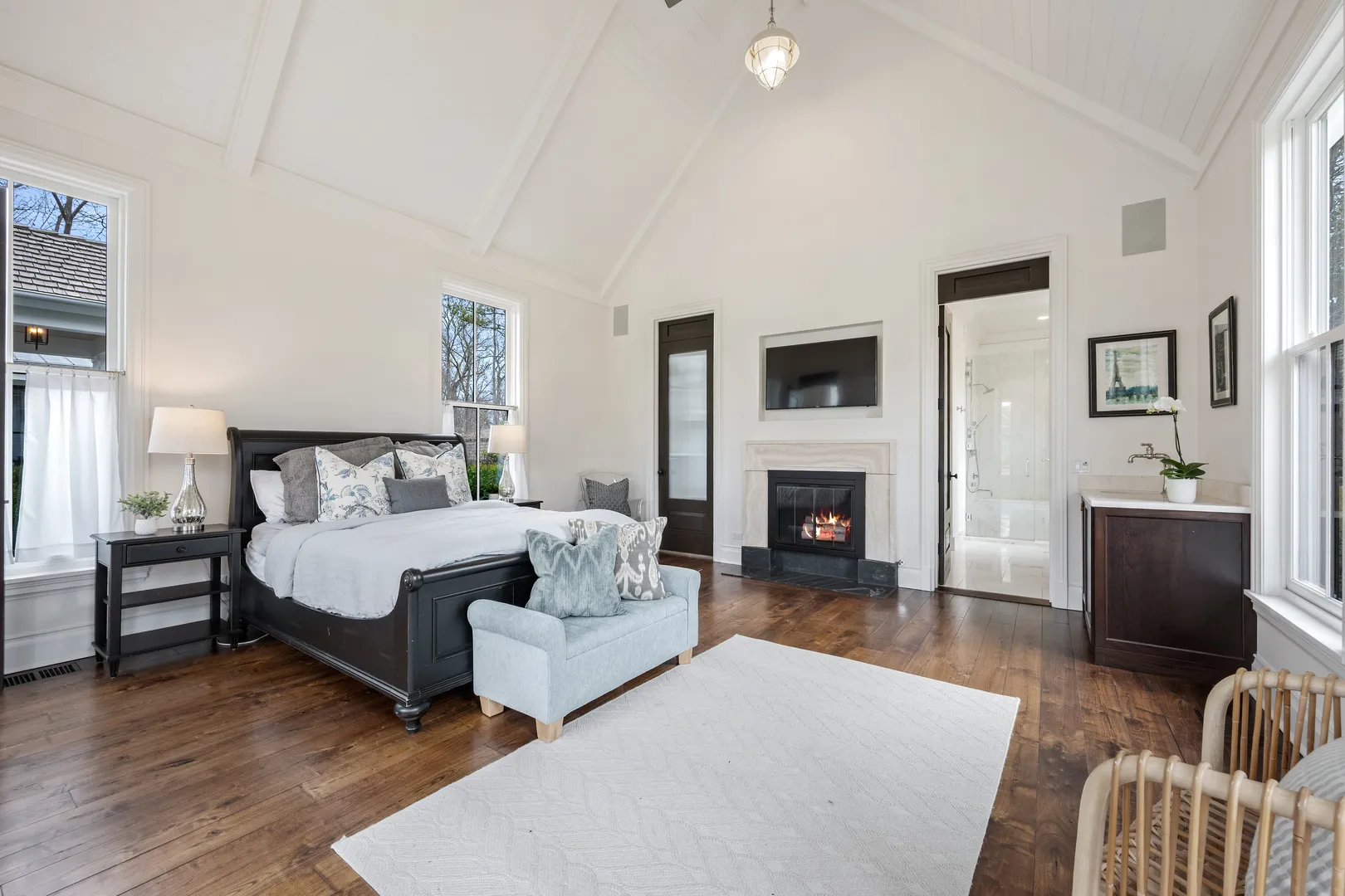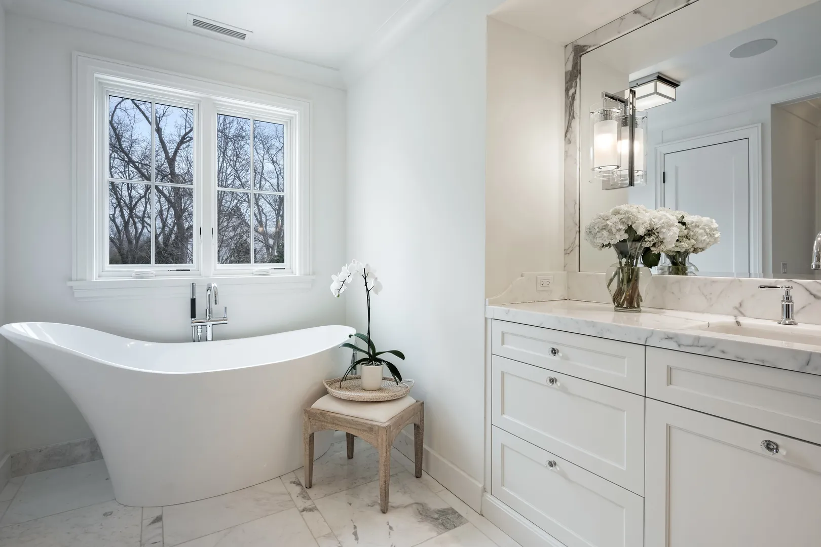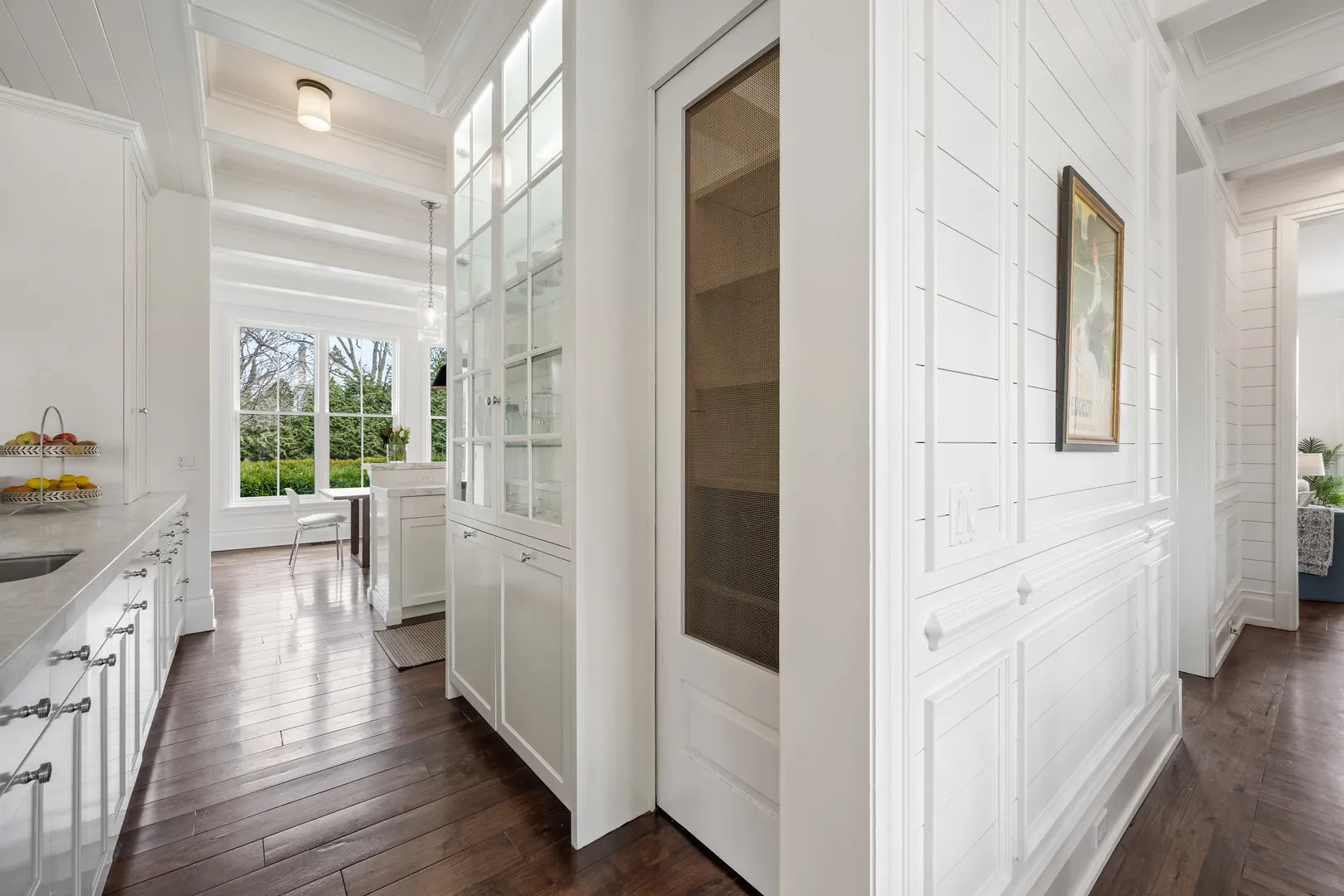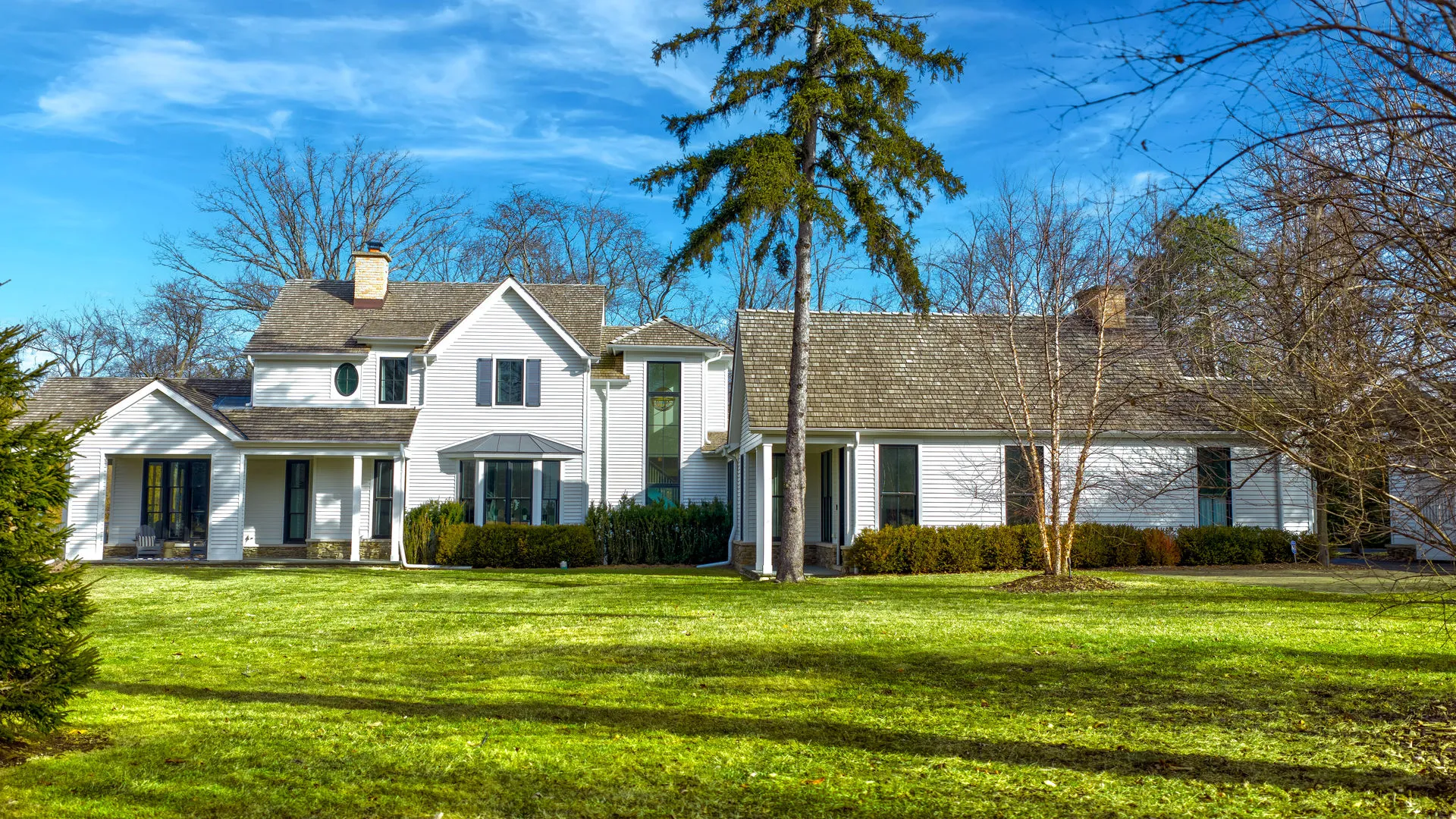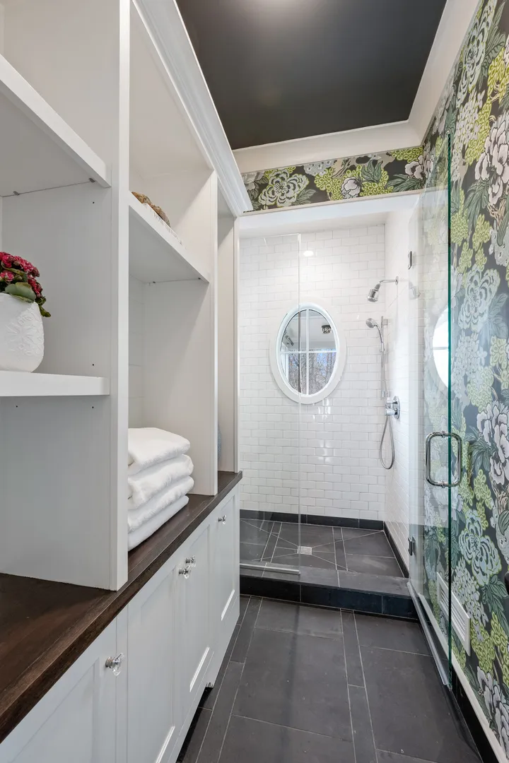 The most iconic white house in Glenview, yes, that one…the sprawling one that everyone stops to look at as the curb appeal is breathtaking from Glenview Road. Notable North Shore architect Paul Konstant brings to life the perfect blend of a farmhouse with a timeless modern-day elegance once again. Enter through the stacked fieldstone pillars to pass under the romantic, picture-perfect portico accented with a Bevolo bronzed, oiled hanging lantern, and arrive at the most sensationally divine white modern farmhouse. Prepare for a breathtaking experience as you enter this one-of-a-kind masterpiece, as there is nothing ordinary about it…only over-the-top extraordinary details with the finest materials, craftsmanship, and timeless style. Beautifully set on 1 acre of manicured landscaped grounds and highlighted at dusk with magical exterior lighting, this 5-bed house delivers a rare option with a 1st & 2nd floor primary suite. From the second you step into the custom 12 ft mahogany door flanked with floor-to-ceiling glass transoms, natural light fills through all the countless Marvin windows in all directions with gleaming hand-beveled walnut floors. This expansive first floor starts with the central hub of this circular flow with a stunning all white crisp Chef’s kitchen accented in Calcutta Gold marble black splash with matching thick c-tops, custom cabinetry with matching glass cabinets with inlay lighting, 2 sinks, 2 dishwashers & separate fridge/freezer with white matching paneling and walk-in pantry. Ample seating with two breakfast bars and a separate breakfast space highlighted by picturesque double hung windows open to the fabulous family room. Scaled perfectly with stone surround fireplace below the gorgeous coffered ceilings, and leads to a fantastic screened in porch with layered stone FP, heaters, and flatscreen TV. Full laundry room, built-out mudroom space with cobblestone brick floors leads to the heated 2 car garage with stainless steel glass doors. The adjacent detached 2 car garage is ideal, with extra parking for 10 more cars on the property. Back inside from the family room, enter the shiplap paneled dining room that transitions to the front of the home’s informal living room with white tailored marble FP and steps out to a covered front patio. Separate hallway leads to a formal office outfitted with vaulted ceilings, Circa lighting, handsome built-in bookcases, full bath and private porch. Right off the main entrance & exclusively its own wing, the first floor primary suite could also be a huge home office or main level gym. Stunning white Carrera marble bath w/heated floor, dual sink metal accented vanity, and spa tub to shower combo. Second floor with 4 more beds all with en-suite including the posh primary suite. All white timeless marble baths with additional 2nd full laundry off primary hallway. 2nd primary suite steps out to private balcony with built-in cabinetry and blissful 5-star hotel bath with white thick marble c-tops, dual sink vanity with Calista fixtures, heated floors, Victoria & Albert soaking tub, Ralph Lauren lighting, and 2 walk-in closets. Huge lower level with rec space built-out side by side bunk beds, entertainment TV section around limestone FP with full bath. 2nd area with bar next to huge step down wine cellar with great storage and display spaces with full storage room. This home is close to 9,000 sq ft of high-end finished space, which could never be duplicated today at this price. There are a total of 6 designated outdoor spaces off the main house, creating the most seamless extension from inside to out. This is a one of a kind property that will always be a showcase show stopper as it’s impossible to bring to life again a house that feels like it was curated from a Hollywood movie set…inviting to anyone that passes it but even more intimate once living in it. Special beyond words.