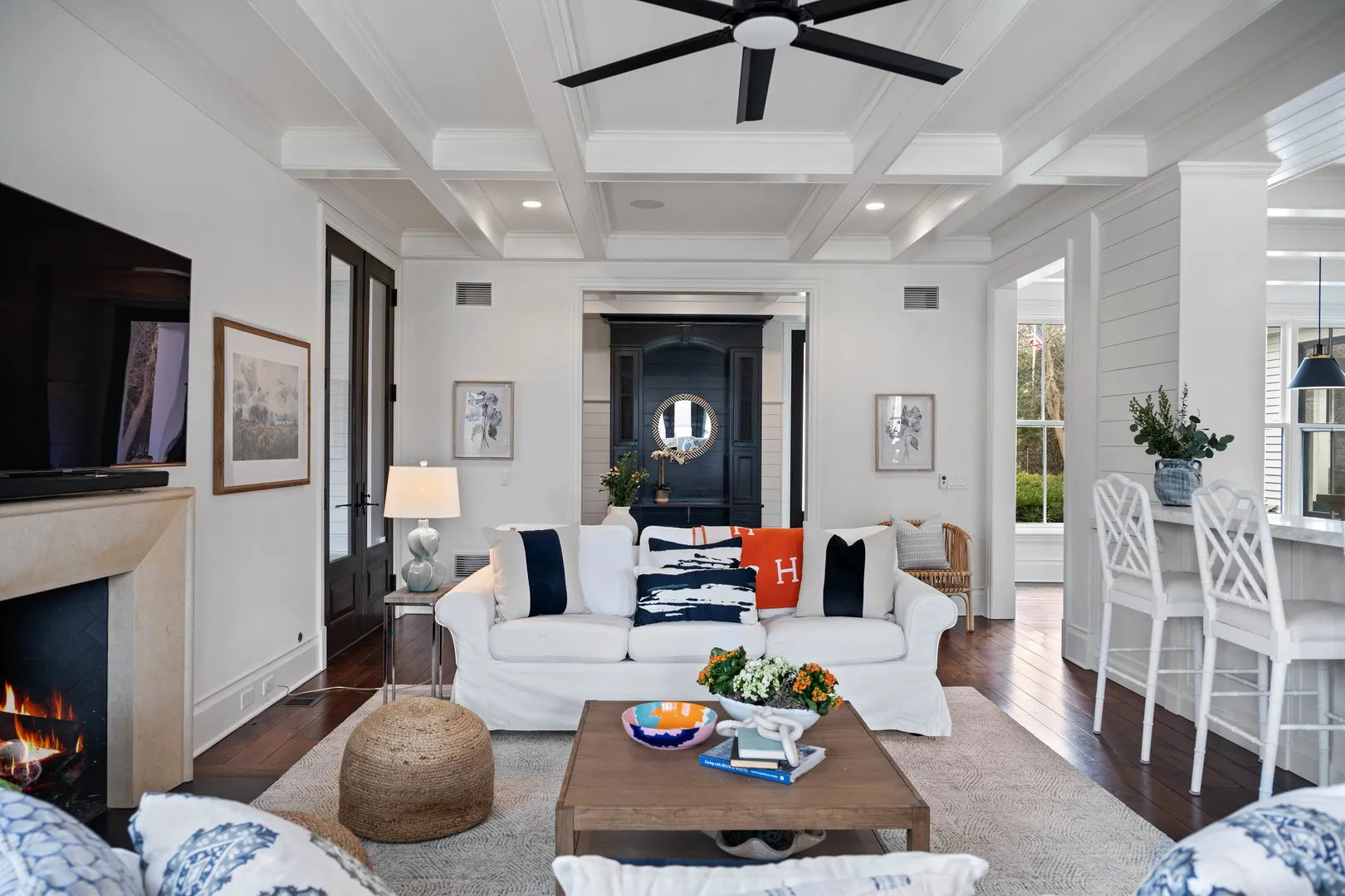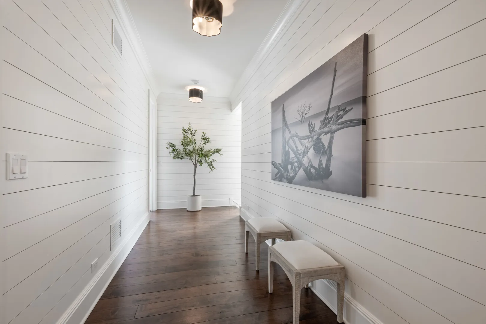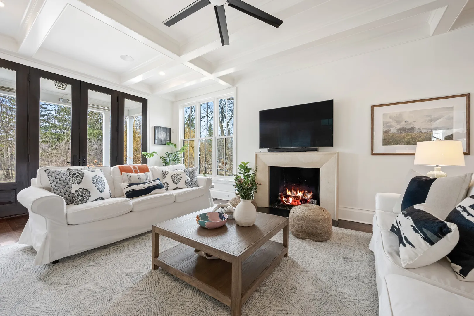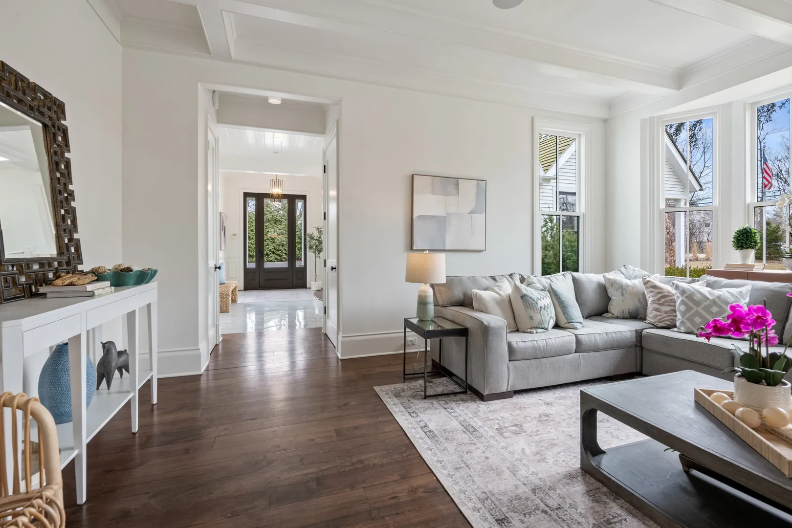The most iconic white house in Glenview, yes, that one…the sprawling one that everyone stops to look at as the curb appeal is breathtaking from Glenview Road. Notable North Shore architect Paul Konstant brings to life the perfect blend of a farmhouse with a timeless modern-day elegance once again. Enter through the stacked fieldstone pillars to pass under the romantic, picture-perfect portico accented with a Bevolo bronzed, oiled hanging lantern, and arrive at the most sensationally divine white modern farmhouse. Prepare for a breathtaking experience as you enter this one-of-a-kind masterpiece, as there is nothing ordinary about it…only over-the-top extraordinary details with the finest materials, craftsmanship, and timeless style. Beautifully set on 1 acre of manicured landscaped grounds and highlighted at dusk with magical exterior lighting, this 5-bed house delivers a rare option with a 1st & 2nd floor primary suite. From the second you step into the custom 12 ft mahogany door flanked with floor-to-ceiling glass transoms, natural light fills through all the countless Marvin windows in all directions with gleaming hand-beveled walnut floors. This expansive first floor starts with the central hub of this circular flow with a stunning all white crisp Chef’s kitchen accented in Calcutta Gold marble black splash with matching thick c-tops, custom cabinetry with matching glass cabinets with inlay lighting, 2 sinks, 2 dishwashers & separate fridge/freezer with white matching paneling and walk-in pantry. Ample seating with two breakfast bars and a separate breakfast space highlighted by picturesque double hung windows open to the fabulous family room. Scaled perfectly with stone surround fireplace below the gorgeous coffered ceilings, and leads to a fantastic screened in porch with layered stone FP, heaters, and flatscreen TV. Full laundry room, built-out mudroom space with cobblestone brick floors leads to the heated 2 car garage with stainless steel glass doors. The adjacent detached 2 car garage is ideal, with extra parking for 10 more cars on the property. Back inside from the family room, enter the shiplap paneled dining room that transitions to the front of the home’s informal living room with white tailored marble FP and steps out to a covered front patio. Separate hallway leads to a formal office outfitted with vaulted ceilings, Circa lighting, handsome built-in bookcases, full bath and private porch. Right off the main entrance & exclusively its own wing, the first floor primary suite could also be a huge home office or main level gym. Stunning white Carrera marble bath w/heated floor, dual sink metal accented vanity, and spa tub to shower combo. Second floor with 4 more beds all with en-suite including the posh primary suite. All white timeless marble baths with additional 2nd full laundry off primary hallway. 2nd primary suite steps out to private balcony with built-in cabinetry and blissful 5-star hotel bath with white thick marble c-tops, dual sink vanity with Calista fixtures, heated floors, Victoria & Albert soaking tub, Ralph Lauren lighting, and 2 walk-in closets. Huge lower level with rec space built-out side by side bunk beds, entertainment TV section around limestone FP with full bath. 2nd area with bar next to huge step down wine cellar with great storage and display spaces with full storage room. This home is close to 9,000 sq ft of high-end finished space, which could never be duplicated today at this price. There are a total of 6 designated outdoor spaces off the main house, creating the most seamless extension from inside to out. This is a one of a kind property that will always be a showcase show stopper as it’s impossible to bring to life again a house that feels like it was curated from a Hollywood movie set…inviting to anyone that passes it but even more intimate once living in it. Special beyond words.