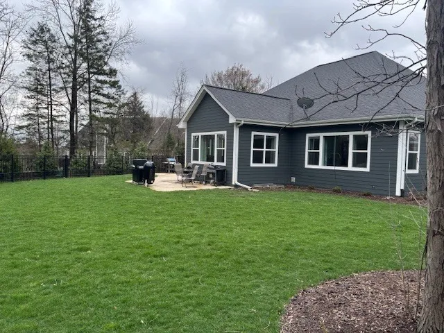 Welcome to this stunning executive-style ranch, built in 2019 and designed for both comfort and elegance. This beautifully maintained 3-bedroom, 2-bath home offers an exceptional open floor plan that seamlessly blends everyday living with stylish entertaining. At the heart of the home is an impressive kitchen featuring a large center island, full appliance package, and a generously sized pantry-perfect for both casual meals and hosting gatherings. The expansive great room showcases a striking fireplace as its focal point, creating a warm and inviting atmosphere, while the oversized dining area provides ample space for entertaining. The luxurious primary suite is a true retreat, complete with a spa-inspired bath offering a walk-in shower and dual vanity sinks. A thoughtfully designed split-bedroom layout ensures privacy, while additional highlights include a main-floor office, convenient mudroom with built-in storage, and a dedicated laundry room. Enjoy year-round relaxation in the sunroom, or step outside to the beautifully landscaped, park-like backyard-fully fenced and featuring a massive patio ideal for outdoor entertaining. Take in the serene views of the backyard and adjoining conservancy area from the great room, sunroom, and primary suite. Additional features include a full unfinished basement ready for your personal touch and an attached 3-car garage providing plenty of storage space. This exceptional home combines modern design, functional living, and peaceful surroundings-truly a must-see!