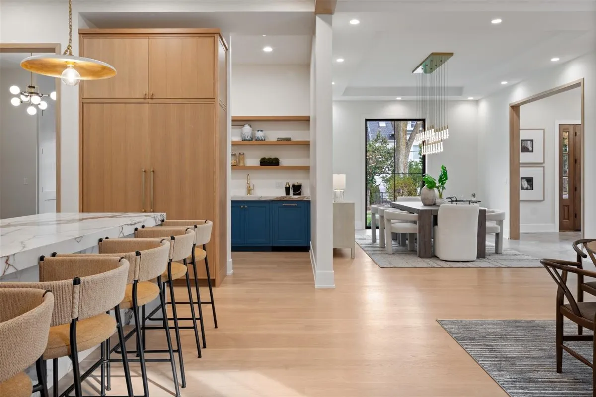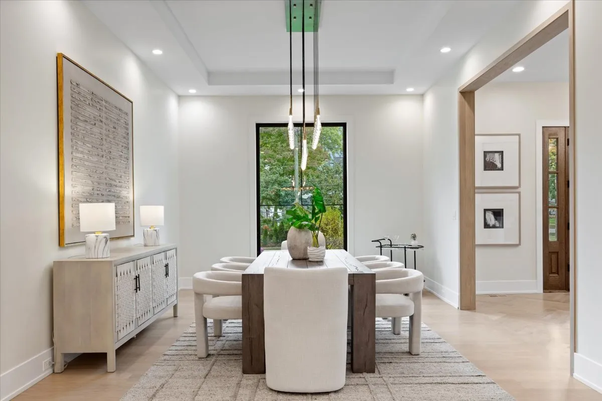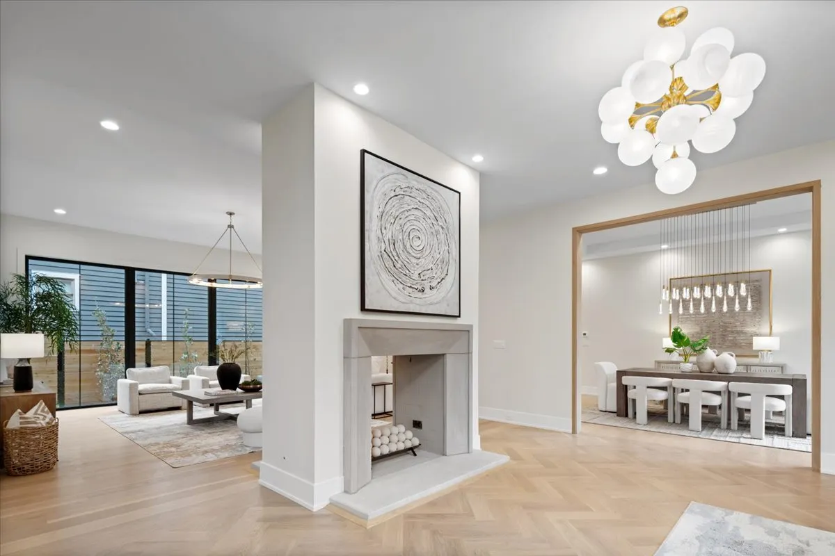 Welcome to 104 S. Monroe – Brand new luxury construction in the heart of Hinsdale. This stunning 7-bedroom, 7.5-bath Belgian farmhouse-inspired home blends timeless architecture with modern luxury, featuring 12-foot ceilings, chevron white oak floors, and a dramatic double-sided limestone fireplace. The open-concept design centers around a spectacular chef’s kitchen with a 10-ft waterfall quartzite island, separate scullery with second dishwasher, and sun-filled great room with floor-to-ceiling windows.The primary suite retreat offers cathedral ceilings, a fireplace, spa-inspired bath with heated floors, wet room with Kohler shower and soaking tub, and a custom-designed walk-in closet room. All second-floor bedrooms are en-suite, while the third-floor en-suite provides a perfect private space for guests. The finished lower level includes a state-of-the-art media room, recreation space with a custom wet bar, plus a 7th bedroom or fitness room and full bath. Outdoor living features four separate patios, including a covered terrace with a stone gas fireplace-ideal for year-round entertaining. Additional highlights include a three-car heated garage with a flexible third bay for a golf simulator, wellness studio, or extra recreation space. Located just steps from downtown Hinsdale, and Blue Ribbon award-winning Monroe Elementary, Hinsdale Middle School, and Hinsdale Central High School.