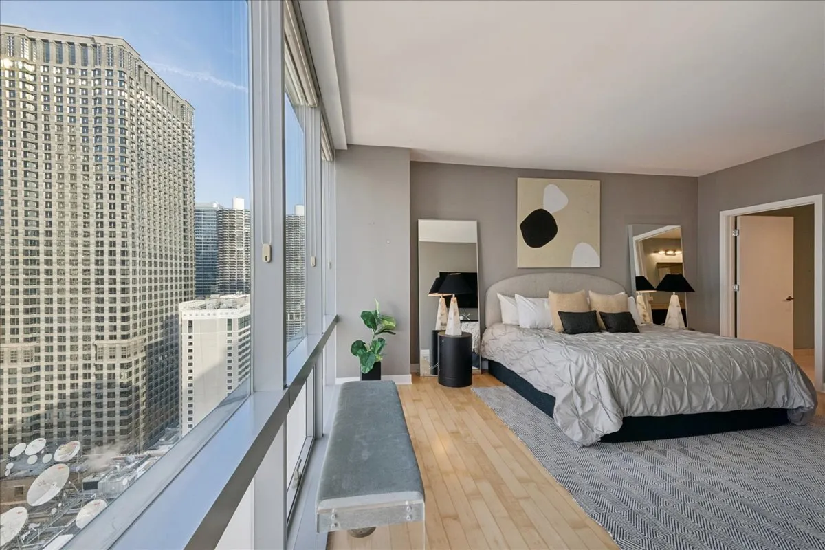 MULTIPLE OFFERS RECEIVED. WE WILL BE REVIEWING WEDNESDAY, MARCH 25TH. Bask in breathtaking lake and city views from this sun-soaked southwest corner unit on a high floor in the iconic Joffrey Tower. This 2-bedroom, 2-bathroom gem is flooded with natural light all day long, thanks to floor-to-ceiling windows in every room. The thoughtfully upgraded kitchen boasts sleek quartz countertops, a modern sink and faucet, a chic glass backsplash, and stainless-steel appliances-perfect for both cooking and entertaining. Both bathrooms shine with elegant marble tile, granite counters, updated sinks, faucets, and lighting, creating serene, spa-like retreats. Wide-plank maple floors run throughout (no carpet here!), complementing the fresh and modern aesthetic. Step out onto your private 12×7 terrace to take in stunning views, or enjoy the convenience of custom window treatments, organized closets, in-unit laundry, and Apple HomeKit technology for keyless entry and smart light control. Joffrey Tower offers a full suite of amenities, including 24-hour door staff, a fitness center, an event room, and on-site management. With assessments covering nearly everything except electric and phone, this is urban living made simple. Ideally located just steps from Millennium Park, Maggie Daley Park, the lakefront, world-class museums, theaters, premier shopping, and public transportation, this home is your gateway to the best of downtown Chicago. NO SMOKERS and NO PETS. Available partially furnished. Rental Qualification Requirements: To ensure a smooth application process, please review our minimum requirements: Credit Standard: All applicants must have a minimum credit score of 680. ncome Verification: Applicants must provide the 3 most recent months of paystubs (or equivalent proof of income). Screening Process: A comprehensive background and credit check is required for all adult occupants. Please use the link in additional information for the QR code. Renter’s Insurance: Tenants are required to maintain a renter’s insurance policy and provide proof of coverage prior to move-in. Garage Parking: Available for an additional $350/month. Move-in: A non-refundable $750 move-in is due to the landlord at lease signing. This is in lieu of a traditional security deposit. Building: Please note that the building association may require additional move-in fees and specific insurance certificates (COI) per their bylaws.