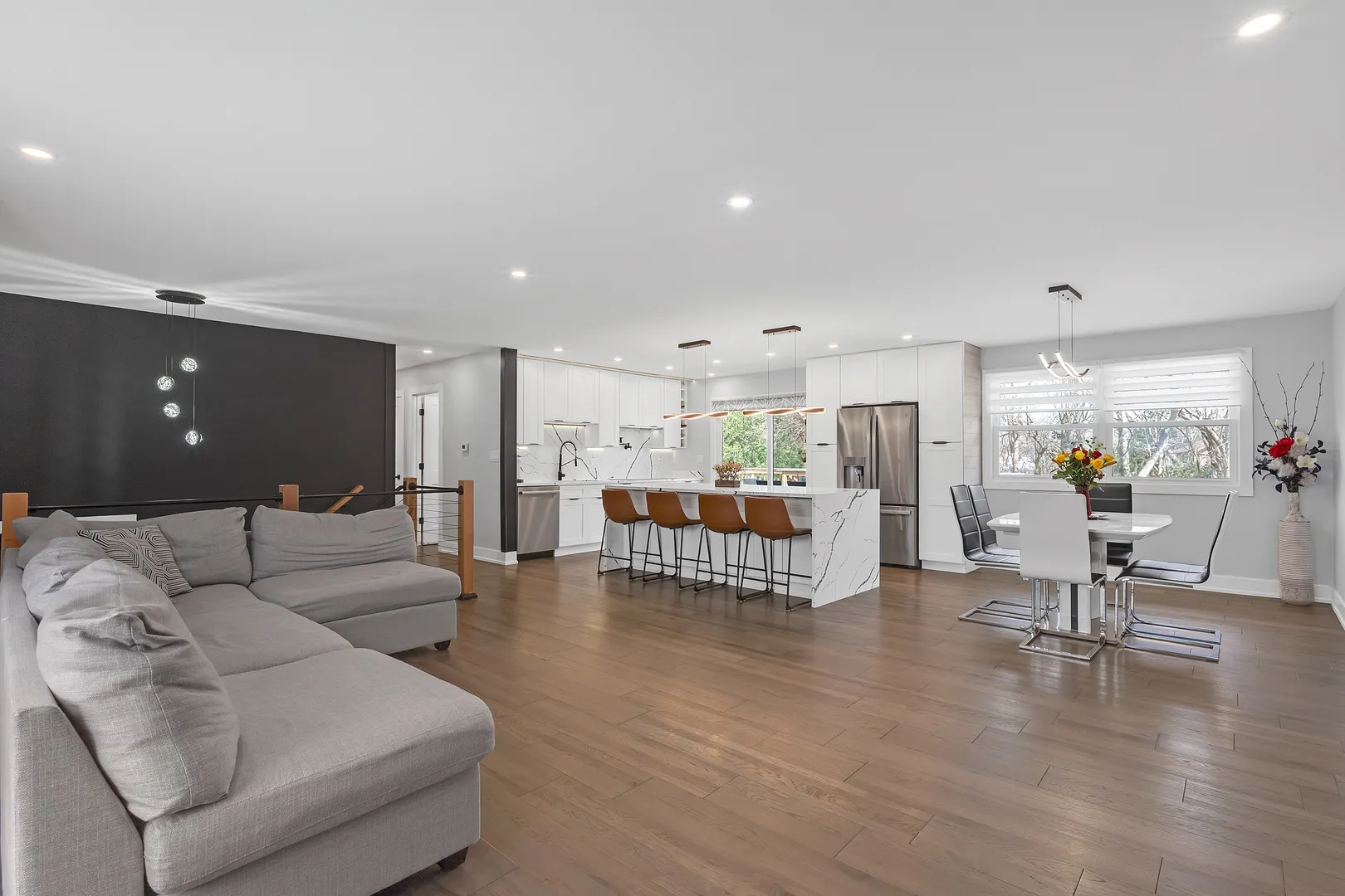 ***Your Dream Home Awaits*** You will be impressed by this stunning home, showcasing high-end upgrades and designer finishes throughout. One of a kind, sprawling raised ranch seated on beautiful lot in English Valley subdivision. Everything is already done! Spectacular open concept with top of the line finishes & unique outdoor space. The magazine-worthy Chef’s European kitchen boasts quartz large island and GE Profile appliances . Elegant dining & living room with an electric fireplace. Enjoy three brand-new, ultra modern bathrooms, each thoughtfully designed with sleek lines, designer fixtures, and top of the line finishes that bring a sense of luxury and relaxation to everyday living. New prefinished Hickory hardwood flooring & LED lighting throughout. Newly finished lower level with huge recreation room with an electric fireplace & new bath. New patio doors & newer windows. Roof 2024. HVAC system 2024. New LP siding. 2 car garage with a new rigid plastic flooring. A large deck off the kitchen-perfect for enjoying your morning coffee. Step out onto stamped patio and envision yourself relaxing here all summer long. Stylish, relaxed sophistication & incredible attention to detail throughout that is sure to impress. Truly a 10! Excellent location! great proximity to schools, restaurants & shopping and all engaging community activities, park district events that downtown Palatine has to offer!