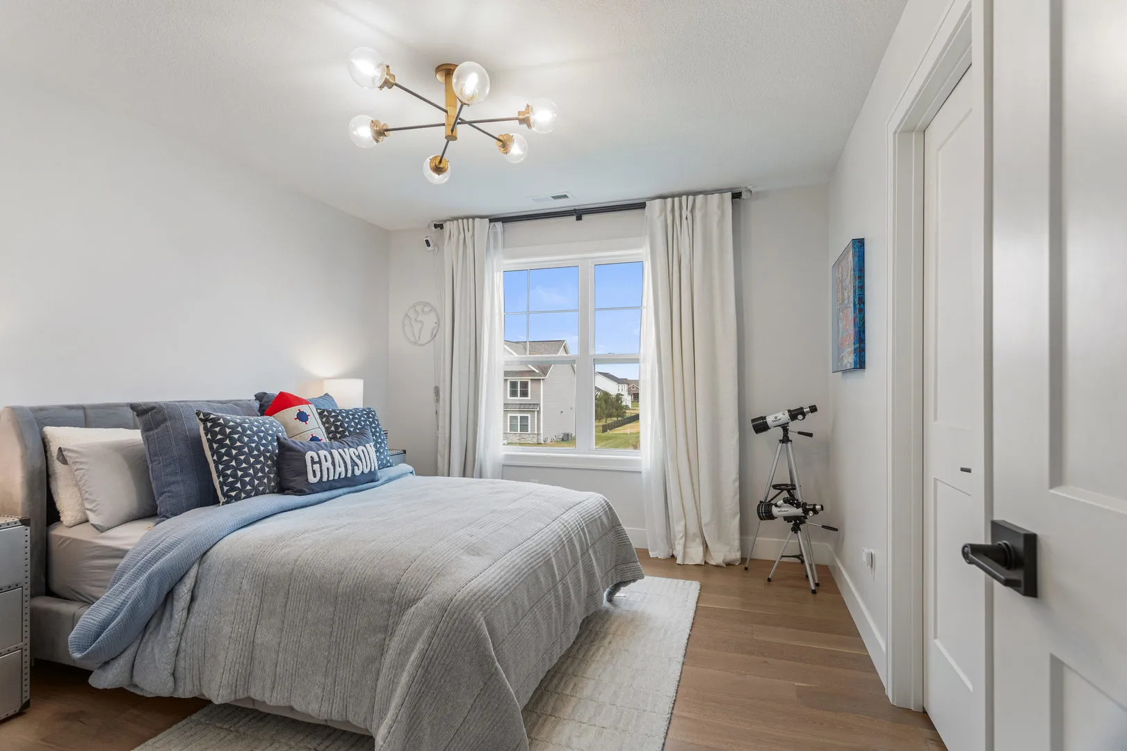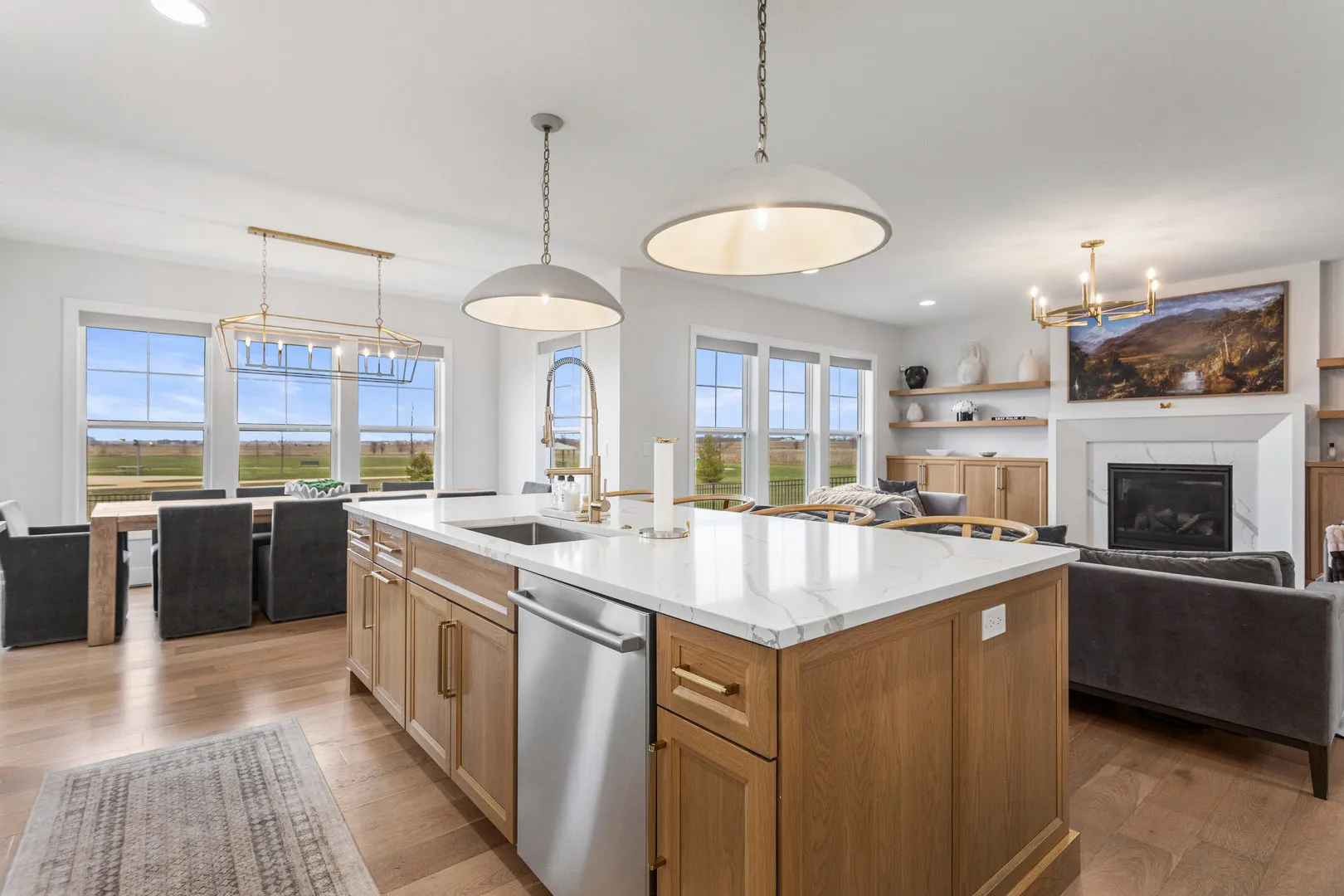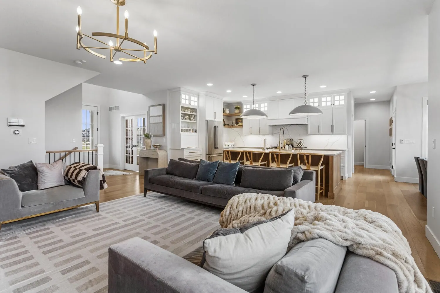 Welcome to 4814 Oakdale, where thoughtful design and truly high end finishes set this home apart from anything else on the market. This is not your typical build. Every detail has been carefully selected and upgraded to create a stunning, one of a kind space. The kitchen is a true showpiece featuring quartz countertops with a full matching backsplash, beautiful hardware, a Wolf dual fuel range with double griddle, Thermador refrigerator and microwave, Bosch dishwasher, walk in pantry, and a convenient appliance garage. Studio McGee lighting over the island and an Arhaus fixture in the dining room add designer touches that elevate the entire space. Hardwood flooring runs throughout the entire home, including the second level, creating a seamless and elevated feel. Custom built ins anchor the living room, and motorized Bali blinds add both comfort and convenience. Natural light pours in from every angle. A main level flex room, currently used as a playroom, offers endless possibilities for a home office, sitting room, or formal space. The mudroom drop zone is thoughtfully tucked away, keeping everyday life organized and out of sight. The finished basement adds a fifth bedroom, full bath, designated workout room, and a spacious second living area perfect for movie nights or hosting guests. Outside, the extremely large corner lot offers both space and privacy, with the fenced backyard backing directly to a park and providing beautiful open views. Professional landscaping with irrigation and a drip system surrounds the home, creating incredible curb appeal. The three car garage provides plenty of space for vehicles, storage, and hobbies. From the designer lighting to the high end appliances and extensive upgrades throughout, this home delivers a truly luxurious feel. It is stunning, unique, and absolutely a must see.