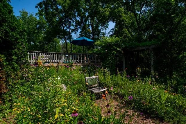 A special find in this area. This nature lover’s paradise is at the end of a private wooded driveway. Enjoy a variety of song birds & wildlife on this hilltop setting located on 5acres of rolling terrain. Well maintained solar envelope ranch-style home w walkout finished basement, plenty of storage and beautiful views out every window. It has att 2 car garage. Updates incl custom woodwork, hickory kit cabinets,& flooring. Several sheds, one w/front porch, groomed walking paths, mature oak, hickory, black walnut trees,& perennial flowers throughout the property. It has a 20×20 garden pond (with waterfall below elevated rear deck).Burnham hot water boiler for hydronic baseboard heaters & Mini Split AC both up and downstairs.Pekul outbuilding has 100-amp service with AC &Propane/Electric
