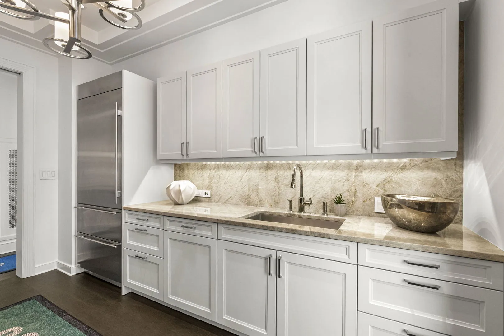 High-floor luxury residence at the Ritz-Carlton Residences, where soaring ceilings, unobstructed views, expansive windows, and wide-plank hardwood floors create a light-filled, elevated living experience. Custom millwork and elegant archways bring timeless architectural character, while the home’s refined finishes and clean, sophisticated palette offer the perfect canvas for a buyer to layer in their own style and vision. Pre-wired smart home technology adds modern ease, making day-to-day living and lock-and-leave convenience feel effortless. The stunning de Giulio kitchen, appointed with custom SieMatic cabinetry, Kallista fixtures, and premium Sub-Zero, Wolf, and Miele appliances, is designed to make both everyday living and entertaining feel polished and seamless. Natural stone baths, including a 5-foot Tea-for-Two Kohler soaking tub, offer a calming, spa-like retreat that turns the end of each day into a moment of escape. With full-service amenities including security, doorman, concierge, valet, fitness center, spa services, butler service, residents lounge, and cinema room, this home delivers an exceptional lifestyle defined by comfort, convenience, and effortless luxury-while offering a sophisticated blank canvas to create a residence that feels distinctly your own.