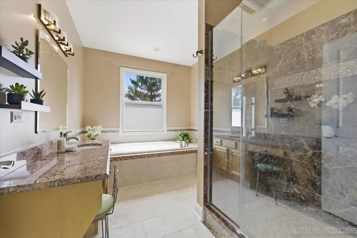 First time on the market, this custom R. A. Faganel home offers over 4,000 square feet of finished living space designed for a flexible, modern lifestyle. The heart of the home features a chef’s kitchen with a granite island that opens directly into the family room, while a separate, large formal dining room is ready for holiday gatherings. Vaulted ceilings and a stunning floor-to-ceiling fireplace create an inviting atmosphere, complemented by a private main-floor office. The entire level flows seamlessly to a deck overlooking a gardener’s paradise-a private, fenced oasis with vibrant perennials and established raised garden beds. The master suite provides a quiet retreat with a soaking tub, double sinks, a remodeled shower, and an oversized walk-in closet. Designed for true multi-generational living or guest privacy, the finished walk-out lower level includes a separate patio entrance and a second sun-drenched family room. The fifth bedroom and full bath featuring a heated floor offer the perfect setup for extended family or can double as a quiet second home office. Meticulously maintained with a three-car garage and HEPA filtration, this home is perfectly situated just one house from H. Michael Wild Park and near the Illinois Prairie Path.