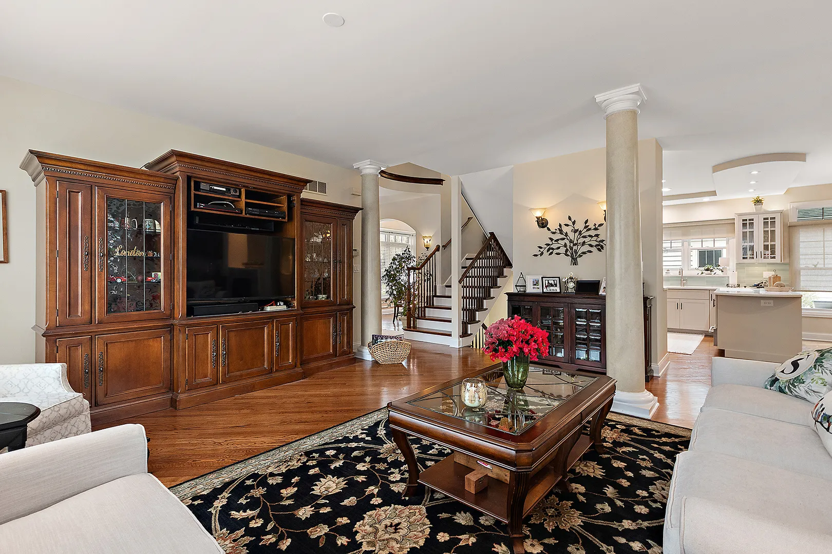 Welcome to this spectacular two-story home in desirable Founders Place, just a short walk to historic downtown Frankfort and the scenic Old Plank Trail. Offering the perfect blend of luxury, convenience, and low-maintenance living, this exceptional residence includes association-covered exterior care such as lawn maintenance and snow removal. This beautifully updated home features 3 bedrooms, 3.5 bathrooms. Designed to accommodate all lifestyles, it includes a private elevator servicing all three levels-from the finished basement to the second floor. Step into a dramatic entryway with an arched opening leading to the elegant living room, highlighted by a stunning full-wall stone fireplace and dual bay windows. The spacious family room is equally impressive, featuring oversized windows with transoms, a fireplace, wet bar with beverage center and granite top, and French doors opening to a private deck and courtyard with a gorgeous paver patio-perfect for entertaining or relaxing. The fully renovated chef’s kitchen is a showstopper, boasting quartz countertops, custom cabinetry, stainless steel appliances, an oversized glass subway tile backsplash, under and over cabinet lighting, a pot filler, dual built-in pantry, and Butler’s pantry. Host gatherings in the formal dining room with its striking octagon tray ceiling, custom millwork, abundant natural light, and built-in buffet/dry bar. Throughout the main level, you’ll find rich hardwood flooring, a functional mudroom with cabinetry and utility sink, and a stylish powder room. Upstairs, all bedrooms are thoughtfully located, along with a convenient second-floor laundry room. The luxurious primary suite features a cathedral ceiling, sitting area, and a spa-like bath complete with heated floor, skylight, whirlpool tub, oversized sit-down shower with multiple body sprays, custom quartz vanity, and dual walk-in closets. Two additional bedrooms and a full guest bath with dual sinks and upgraded fixtures complete the second level. The finished basement expands your living space with game and recreation areas, a bathroom, workshop, and abundant storage. Additional highlights include three fireplaces, white doors and trim throughout, a heated attached two-car garage, whole-house generator, 75-gallon hot water heater and a newer roof (2021). Located in the highly acclaimed School District 157-C and Lincoln-Way East High School boundaries, this home truly has it all – unmatched quality, upgrades, and location. Don’t miss this rare opportunity to own a remarkable home in one of Frankfort’s most sought-after communities!