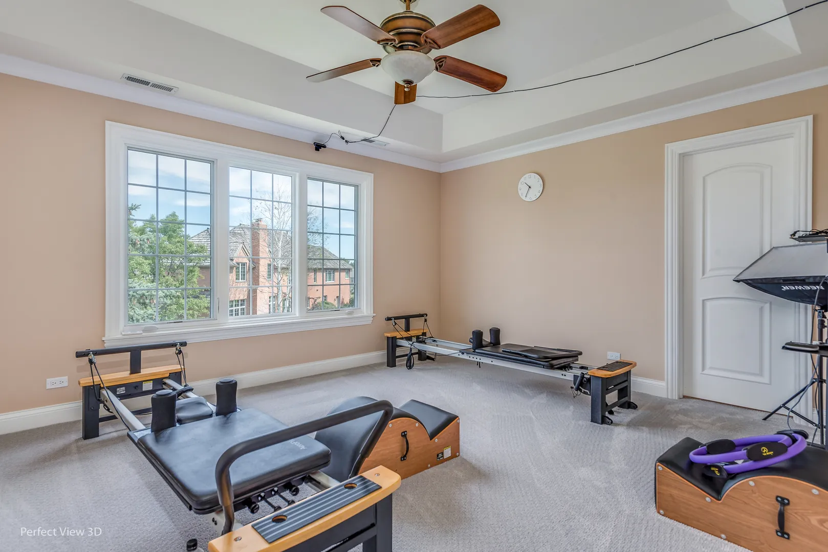 Located in the sought-after Braymore Hills of Inverness, this home offers a thoughtful, flowing floorplan designed for both daily living and effortless entertaining. The home opens with a bright entry foyer, beautiful Brazilian Cherry hardwood floors and grand stairwell. Oversized windows throughout the home ensure every room is filled with natural light. The heart of the home is the expansive eat-in kitchen, equipped with a center island, professional stainless-steel appliances, and custom cabinetry. Just off the kitchen, sliding glass doors open to a large, low-maintenance composite deck. For more formal gatherings, the dining room across from the kitchen features elegant tray ceilings with accent lighting and plenty of space for hosting. The first-floor master suite provides excellent accessibility, featuring a large walk-in closet with custom built-in cabinetry and a well-appointed bathroom with a separate soaking tub and shower. Upstairs, you will find four sizable bedrooms, each with its own private bathroom and walk-in closet, plus a large bonus room that offers great flexibility for a home office or play area. The walk-out lower level is fully finished for recreation, featuring a full wet bar, a dedicated movie theater, and a full bathroom. Walk out directly to a brick paver patio and a built-in firepit overlooking an open backyard. 4 car heated garage with epoxy floors. 50-year composite roof in 2016. Barrington Schools! City Water and Sewer.