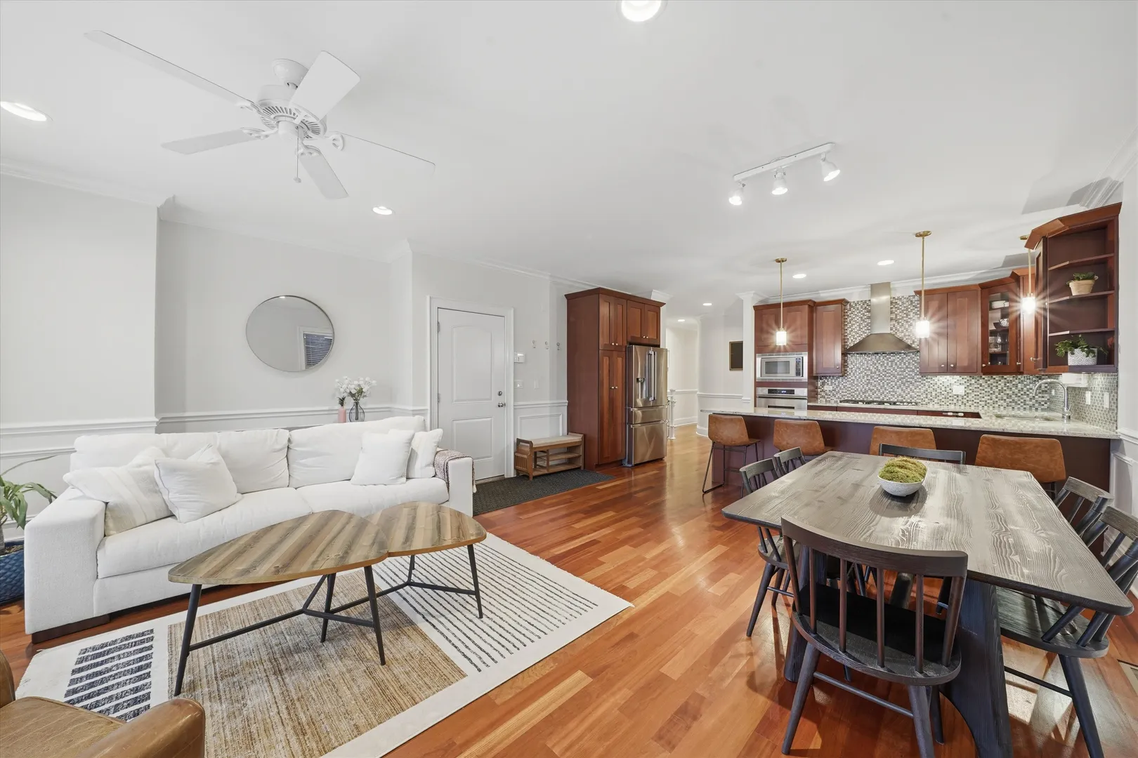 Set within the highly sought-after Blaine School District, this expansive 3-bedroom, 3-bathroom duplex at 3709 N Ashland, Unit 1S offers an exceptional blend of space, style, and location in the heart of Lakeview. Located in a solid all-brick, boutique six-unit building, this contemporary home lives like a single-family residence with two full levels of living, abundant natural light, and rare outdoor space. The main level features an open and airy living space highlighted by hardwood floors, oversized windows with east, west, and southern exposures, and a cozy fireplace that anchors the room. The layout flows seamlessly into the dining area and chef’s kitchen, outfitted with cherry shaker cabinetry, granite countertops, an oversized breakfast bar, a built-in beverage refrigerator, and ample storage, ideal for everyday living. Also on the main level is a spacious primary suite designed as a true retreat, complete with a walk-in closet and a spa-like en-suite bath featuring a steam shower and jacuzzi tub. A second generously sized bedroom and full bath on this floor provide flexibility for a home office, nursery, or guest space. Step outside to the covered balcony, accessible from both the hallway and primary suite, offering plenty of room for seating and grilling with welcome shade throughout the day. The lower level opens into a large, light-filled family room with tall ceilings and multiple windows, creating an inviting space for relaxing or hosting. A wet bar with an additional beverage refrigerator makes this level perfect for entertaining. A third bedroom and full bathroom on this floor offer privacy for guests or extended stays. One of the home’s standout features is the expansive private roof deck above the garage, large enough to accommodate a dining area, lounge seating, grill, and garden. With added privacy walls, it’s the perfect setting for summer gatherings. Additional highlights include in-unit laundry, dual-zoned central heating and cooling, abundant storage, and one garage parking space. Ideally located near the Southport Corridor, you’re just steps from neighborhood favorites like Crosby’s Kitchen, Southport Grocery & Cafe, and Coda di Volpe, along with easy access to public transportation, grocery stores, fitness studios, and everything Lakeview has to offer. Explore the home in 3D-click the virtual tour to walk through every detail.