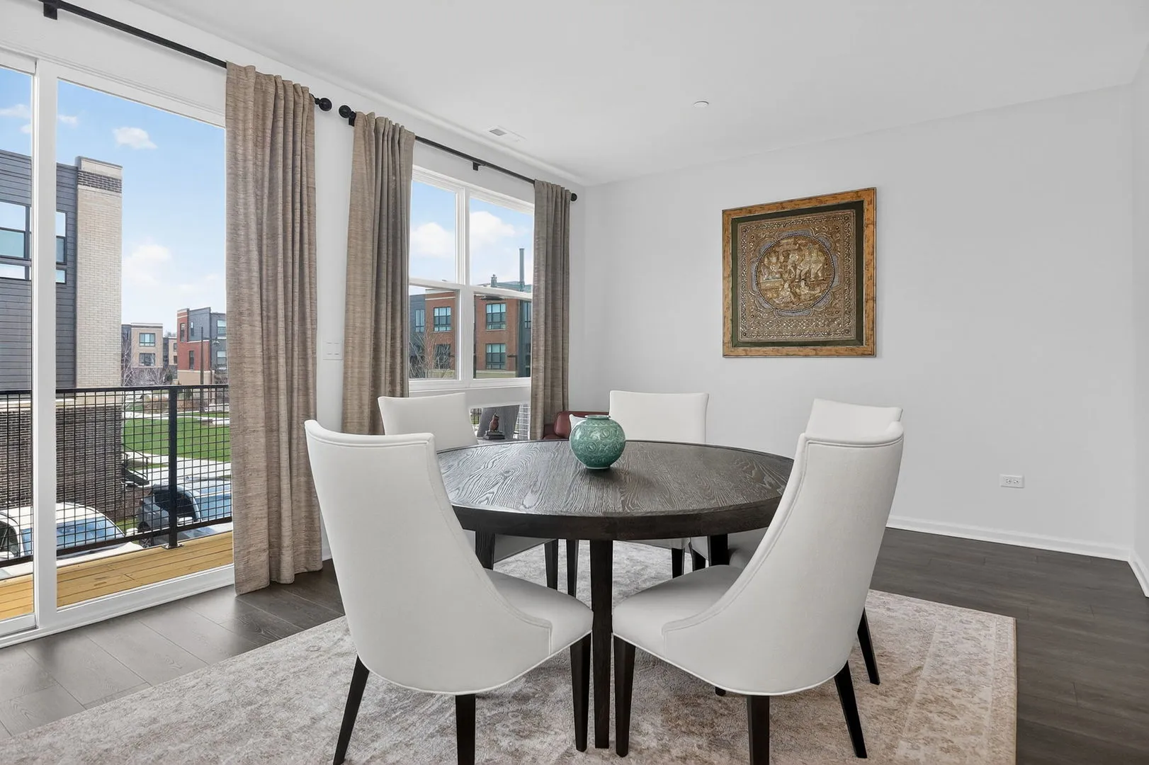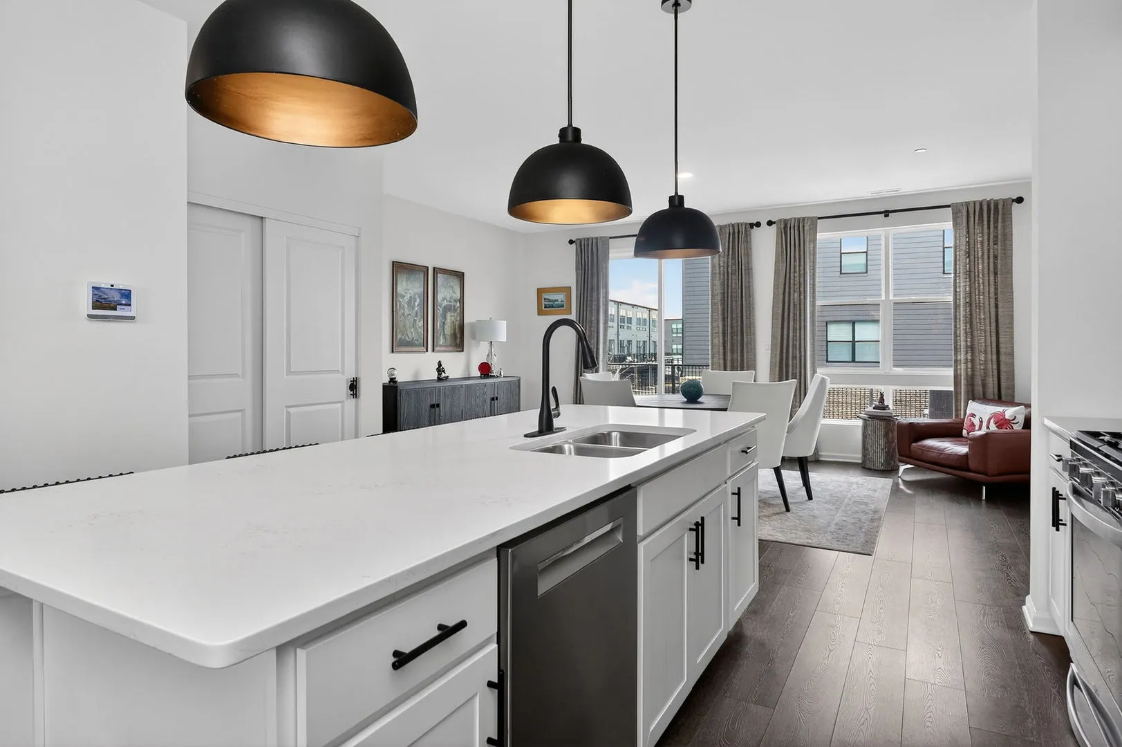 Step into this beautifully finished, upper-tier Grayson model townhome located in the final phase of a nearly completed community-offering peace, privacy, and a true neighborhood feel without ongoing construction disruption. Perfectly positioned on a quiet interior street, this home enjoys a premium location away from traffic and construction noise, while sitting just steps from the community park. This thoughtfully designed 3-bedroom, 3.5-bath home with a finished lower-level flex room currently used as a 4th bedroom offers exceptional versatility-ideal as a home office, guest suite, workout room, or even a 4th bedroom with its own full bath. The open-concept main level features 9-foot ceilings, expansive living and dining spaces, and floor-to-ceiling windows that create a bright, airy atmosphere. The chef’s kitchen is the centerpiece, showcasing: * 42″ white designer cabinets with crown molding * Soft-close doors, dovetail drawers & hardware * Quartz countertops & spacious island with seating * Stylish tile backsplash * Stainless steel appliances Upstairs, retreat to the luxurious primary suite with abundant natural light, a large walk-in closet, and a spa-like bath featuring dual vanities and a tiled walk-in shower. Two additional bedrooms, a full bath, and a convenient second-floor laundry room complete the upper level. Designed for modern efficiency and comfort, this home includes: * Advanced HVAC system & enhanced insulation for energy savings and sound control * Tankless water heater * RevWood flooring throughout main living areas * Extended 2-car garage with conduit for future EV charger Enjoy the convenience of Smart Home Technology, including a video doorbell, smart thermostat, smart lock, Amazon Echo Pop, and full connectivity via Wi-Fi, Bluetooth, Z-Wave, and cellular integration-allowing seamless control from anywhere. Located in the highly desirable Northgate at Veridian, residents will benefit from exciting upcoming developments including: * The District – a 30-acre mixed-use “Main Street” destination * An 8-mile greenway trail system for biking and walking * A 12-acre urban park with future enhancements All of this with quick access to highways, shopping, dining, and top-rated Fremd High School District. Why wait to build when you can move right in? This is a rare opportunity to own a premium, move-in ready home in one of Schaumburg’s most exciting and evolving communities.