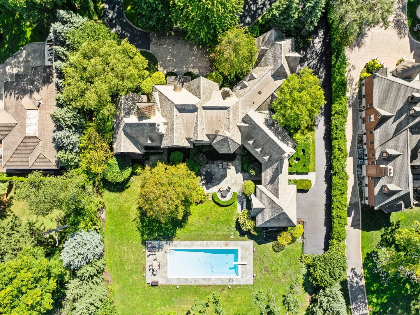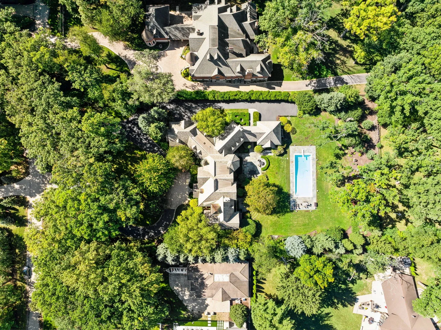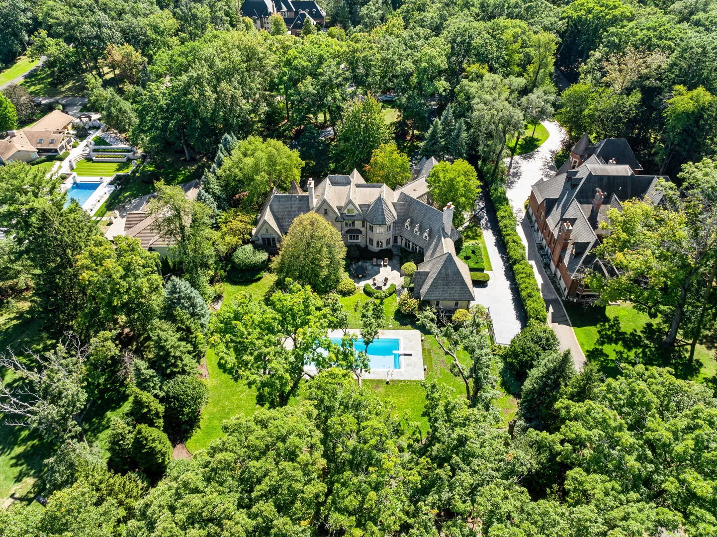 What a incredible offering in Oak Brook One of the finest properties. Luxury living at its best! Magnificent residence on a close to 3 acre private interior estate in Oak Brook offers privacy and a resort style living designed for family enjoyment and entertaining. Great location with easy access to major roads and highways, Oak Brook shopping center, Oak Brook Sports Core, Downers Grove, Good Samaritan Hospital. 7075 sq ft above ground plus 4718 square feet walkout lower level. Winding dual driveway. Impressive entryway. Finest appointments and great attention to detail throughout. Fine millwork, double and triple crown molding, accent lighting tray ceilings. 2 staircases. Rooms of grand proportions. Luxurious first floor primary suite with balcony overlooking the yard, walk in closet and sitting area. The living room has a beautiful fireplace. The dining room is perfect for entertaining and has one of a kind butlers pantry with wet bar and counter made of silver metal. Chef’s kitchen with high end stainless steel appliances including Subzero, Thermador, Miele and Bosch, large island, custom wood cabinetry, open to the breakfast room leading to the patio and great room. The 2 story great room has walls of windows, fireplace, large bar, impressive grand chandelier, leads to the 3 season room with fireplace and access to patio, yard and pool. The second floor has 4 large bedrooms with ensuite bathrooms, one of which is large enough for a second primary bedroom and an expansive den/flex room which can a play area, office or converted to an additional bedroom suite. The lower level is lookout and walkout and has a fireplace, bar/kitchen, game room, exercise room, sitting area and a media room. The yard is beautifully landscaped and has an amazing outdoor pool and lots of green spaces, patio and firepit. This home has it all. 4 furnaces and 4 air conditioners plus radiant heat in basement, garage and primary bathroom. Amazing 5 car garage extra wide with epoxy flooring. Award winning Downers Grove North School and Downers Grove elementary school district 58. There is a possibility of subdividing the almost 1 acre lot at rear of the pool fence.