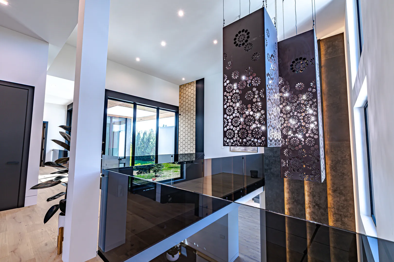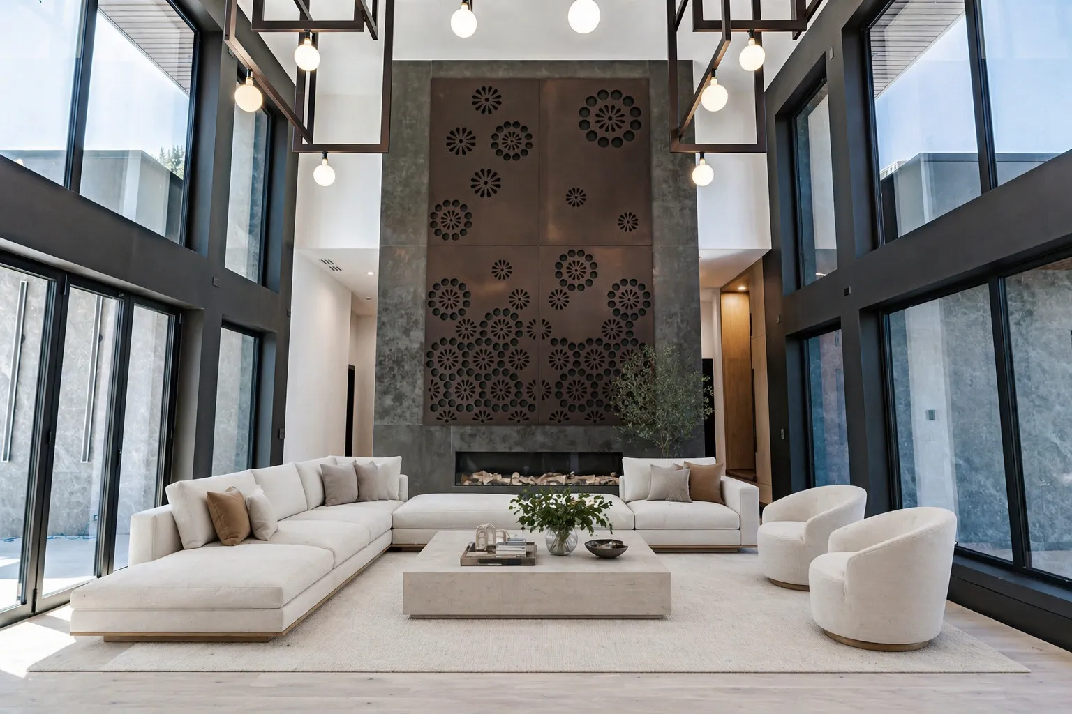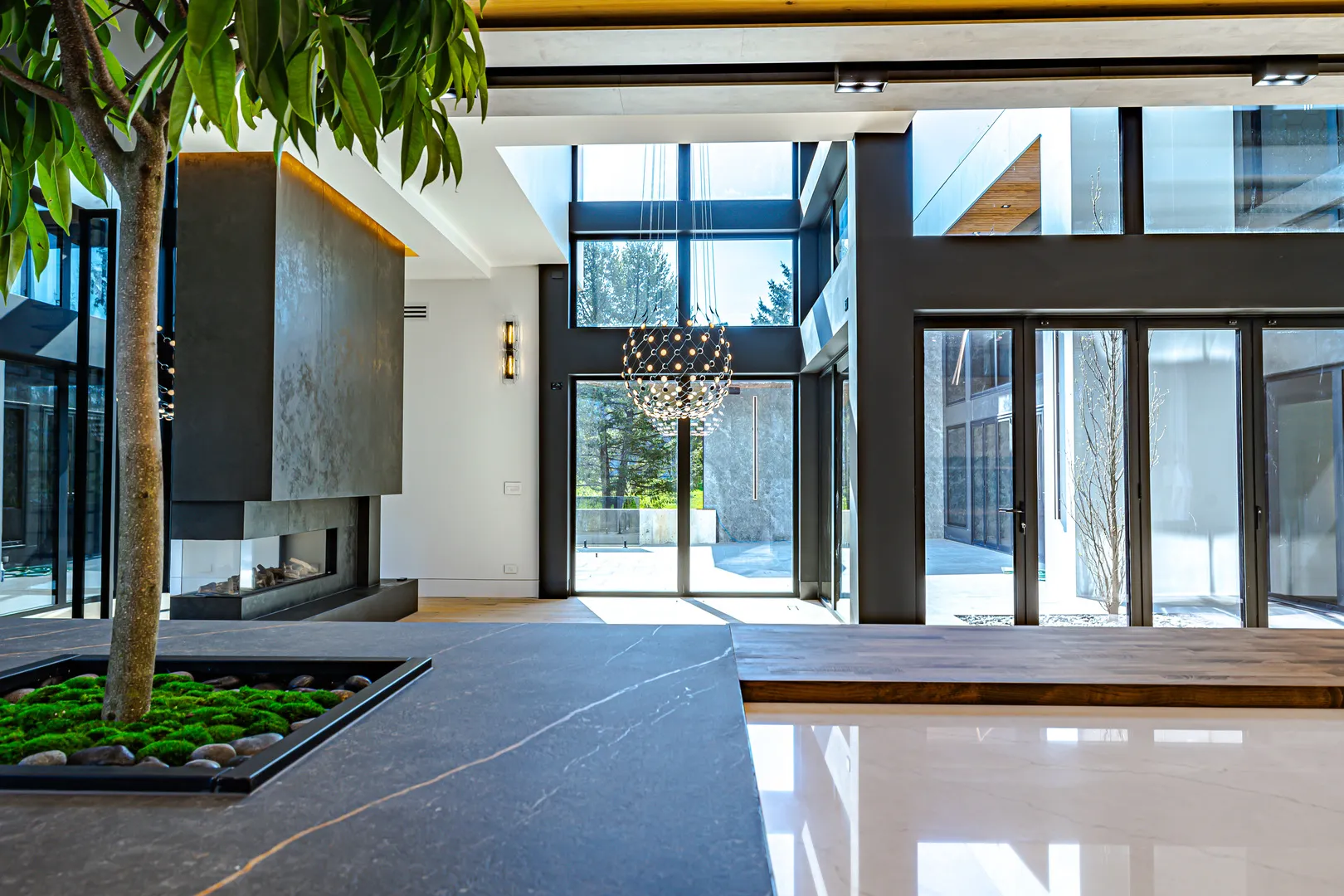 11,600 sq ft of modern luxury on 5.3 private acres in Barrington Hills-where space, privacy, and design meet. Truly one of a kind, this California-inspired estate brings a rare West Coast lifestyle to Illinois, featuring floor-to-ceiling windows, abundant natural light, and an open, airy sense of space throughout. Exceptional new construction in prestigious Barrington Hills, designed with both elegance and functionality in mind. This residence features 5 spacious bedrooms and 5.5 luxurious bathrooms. The expansive kitchen anchors the home and flows seamlessly into multiple living areas, including a formal dining room and dual family rooms-ideal for both everyday living and sophisticated entertaining. A private office provides a quiet, dedicated workspace and features a separate side entrance-perfect for a home office, or added privacy. The extraordinary primary suite serves as a true retreat, complete with a custom walk-in closet, private fitness area, and a spa-inspired bathroom featuring a sauna. Designed for seamless indoor-outdoor living, the home showcases a stunning double-level patio overlooking the expansive grounds, creating the perfect setting for relaxation or gatherings. The walkout basement offers additional space and versatility, ready to be customized to suit any lifestyle-from entertainment to wellness or recreation. A 5-car garage, grand scale, and thoughtfully designed layout complete this exceptional property-offering a rare combination of sophistication, comfort, and modern architectural elegance in one of Barrington Hills’ most sought-after settings.