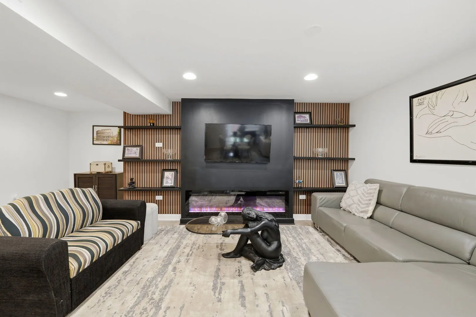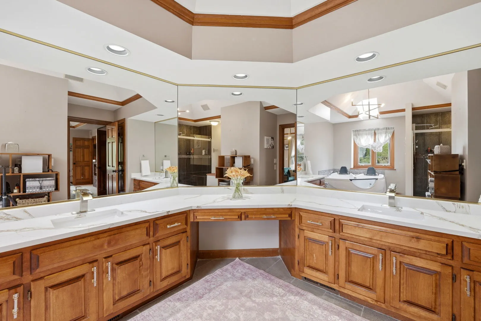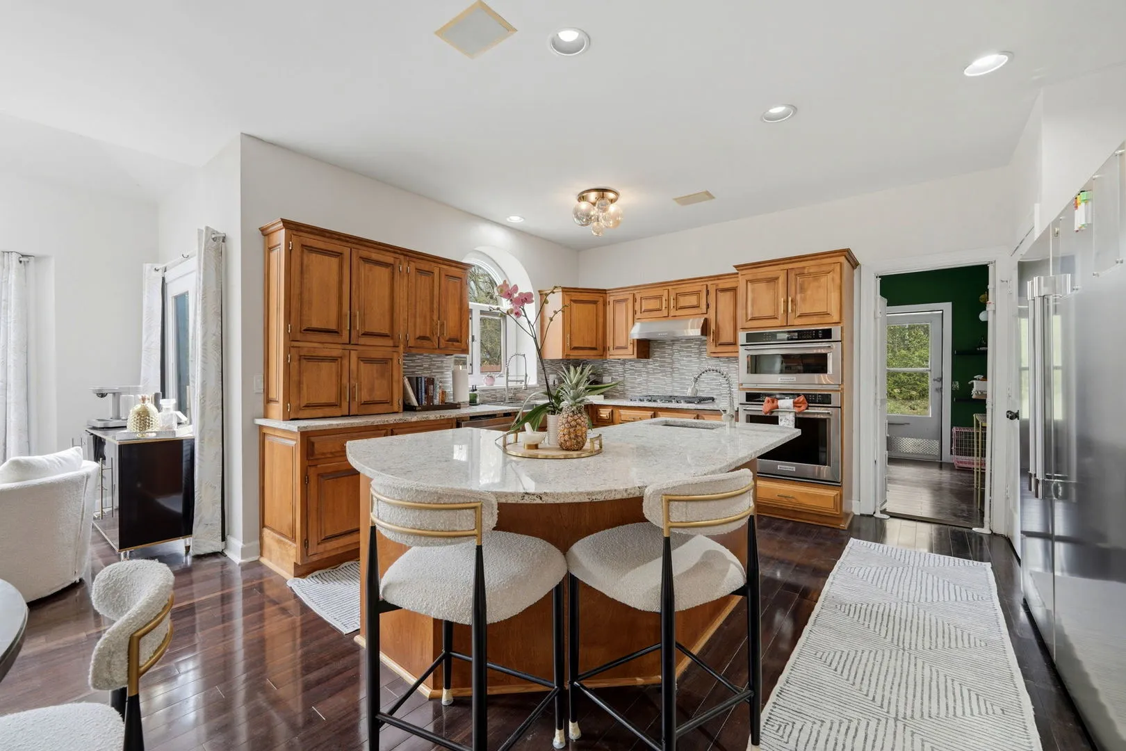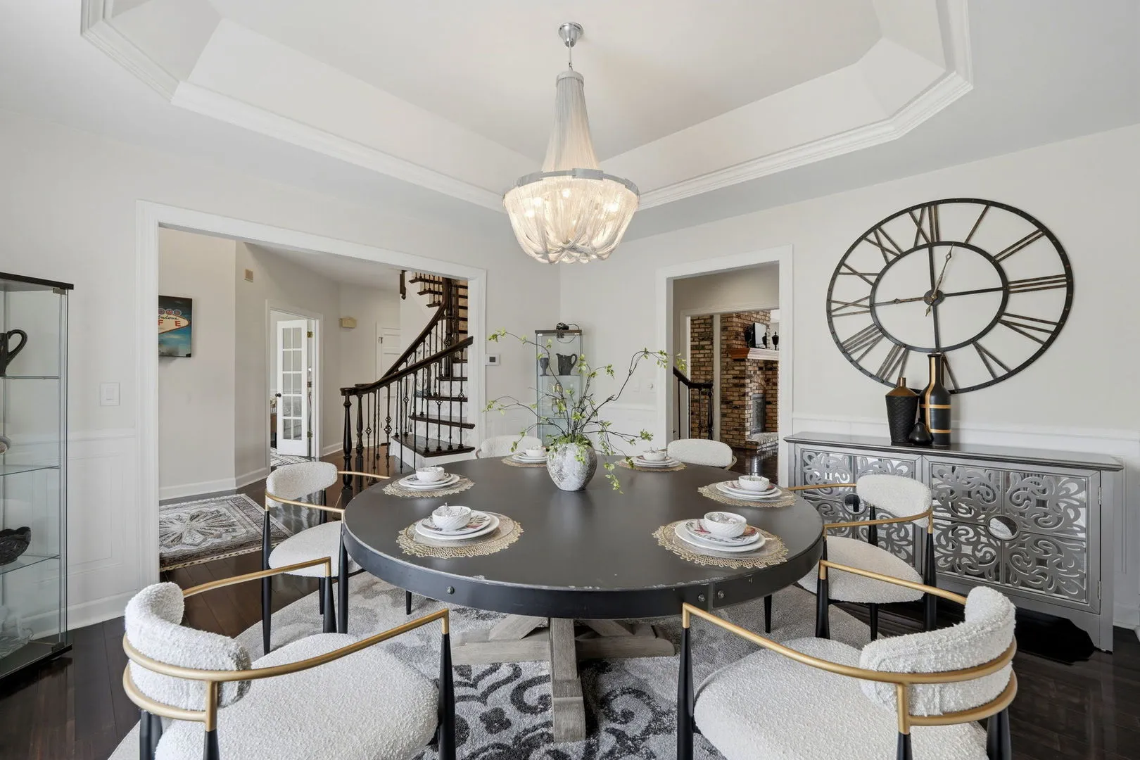 Set on 1.6 acres of private, picturesque grounds, this fully reimagined estate offers a refined blend of mid-century modern design, luxury finishes, and multigenerational living-framed by a serene creek that runs along both the front and rear of the property. A winding driveway sets the tone for a true estate arrival, leading to a sprawling front terrace with dual fountains-an inviting setting for both entertaining and quiet outdoor moments. A heated walkway extends to the backyard and a covered lower level walkout, enhancing year-round accessibility and seamless indoor-outdoor flow. Inside, a grand foyer and custom staircase with extended newel posts establish a strong architectural presence. The main level features hardwood flooring, vaulted ceilings, and a warm, open layout designed for both everyday living and entertaining, along with a conveniently located half bath. A double-sided wood-burning fireplace anchors the living room and eat-in kitchen, creating a natural connection between the spaces. The chef’s kitchen is thoughtfully appointed with Frigidaire Professional Series refrigeration, gas cooktop, wall oven, and microwave, centered around a generous island with a secondary prep sink, and complemented by custom storage and curated lighting selections. Upstairs, you’ll find four bedrooms and three full baths, including a primary suite overlooking the backyard and creek. This private retreat features a tray ceiling, fireplace, and window seating, along with a bath complete with quartz countertops, jetted tub, and separate shower. A guest bedroom functions as a junior suite with a private ensuite bath, while two additional bedrooms are connected by a Jack-and-Jill bath. The walkout lower level has been reimagined into a light-filled private living space, featuring a well-appointed kitchen with pantry, living and dining areas, bedroom, and full bath-well-suited for extended living, guests, or flexible use. Additional highlights include a three-car attached garage, a backyard deck off the kitchen, and a well-designed mudroom that adds everyday convenience. If privacy, thoughtful design, and flexible living are priorities, this property offers a compelling opportunity in a truly distinctive setting. is property offers a compelling opportunity in a truly distinctive setting.