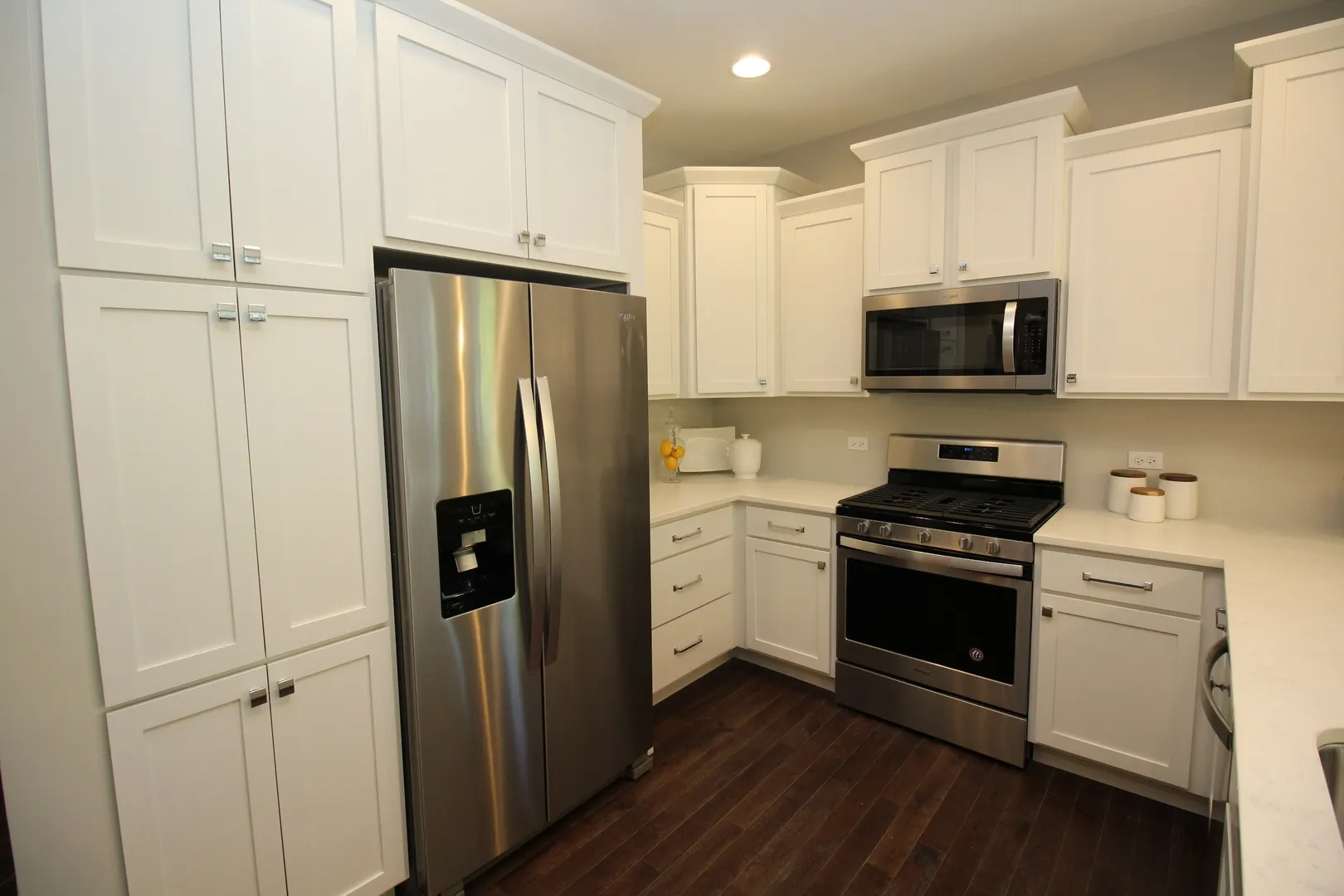Townhome in Prime Countryside Location Experience modern living in this beautifully designed newer construction townhome featuring an open-concept floor plan and elevated finishes throughout. The dramatic living room showcases soaring lofted ceilings, rich hardwood flooring, and a cozy gas fireplace-perfect for both relaxing and entertaining. The chef-inspired kitchen is the heart of the home, offering a spacious breakfast bar, sleek quartz countertops, glass tile backsplash, and a full suite of stainless steel appliances. Thoughtful details like Kohler fixtures and contemporary finishes add a touch of luxury. Generously sized, carpeted bedrooms provide comfort and ample closet space. The fully finished basement expands your living area with an additional bedroom, full bathroom, and a large recreation room-ideal for guests, a home office, or entertainment space. Additional highlights include: Stylish, upgraded lighting with chandeliers and pendant fixtures Convenient main-level laundry room with washer and dryer Smart home features including programmable thermostats and USB-integrated outlets Attached two-car garage plus driveway parking for two additional vehicles