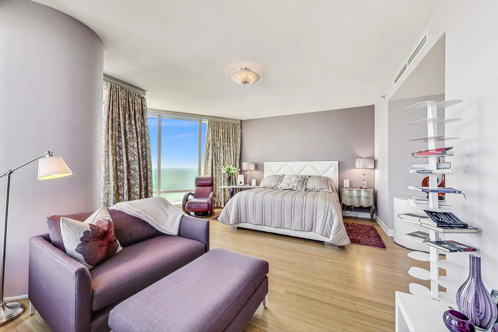 Breathtaking Panoramic view from this very high floor. 4901 clears the Buckingham and Harbor Point with forever views of Lake Michigan, Maggie Daley, Millennium and Grant Parks, significant architectural structures on Michigan Ave., the “Bean”, Museum Campus and everything Chicago has to offer. This unit can be leased fully furnished if needed and provides for the finest in high-end Italian furniture throughout entire unit. Complete kitchen set up, linens, bedding, pillows, towels, etc. Residence 4901 features a gracious foyer and immediate views from floor to ceiling windows, 10′ ceilings, bamboo hardwood floors throughout, roller shades, Lalique lighting fixtures and sconces, painted in neutral tones, modern, artful and sleek, straight-lined decor and furniture. Inviting living and dining areas with fireplace, cabinetry built-ins with open glass shelving above, open kitchen with peninsula and room for seating, under mount sink, natural 1.25″ straight edge Quartz counters, stainless steel GE Monogram appliances, under-counter wine refrigerator, warming drawer, gas cooktop with vented culinary hood, large enough for eat-in four top and modern hutch for bar and glass stemware storage/display. Flat panel Snaidero cabinetry with frosted glass panel upper cabinets, glass mosaic backsplash. A walk-in laundry room-pantry and second access door. South facing balcony right off the kitchen for entertaining and views to the south, east and west to IN and MI. Versatile third bedroom set up as a wonderful office and guest room with sleeper sofa and ensuite full bathroom. Powder room off the foyer, second bedroom with two double beds and desk setup, “butterfly” art installation, open shelving, ensuite bathroom dressed in natural stone and subway tile. Experience the north views. Primary bedroom offers three major view exposures to the south, east and north, small lookout balcony, all bamboo floors, walk-in closet, king size bed and seating area for reading, relaxing or getting lost in the daytime and night time city views. Sumptuous primary bathroom with large windows and a classic Chicago skyline view of Water Tower, Hancock, Olympia Center and the Four Seasons. Separate shower with frameless glass, soaking tub, all dressed in natural stone, large dual vanity. This building offers full amenities and services including a 24 hour door staff, onsite management and maintenance, designated, heated garage parking spaces in private garage, on-site dry cleaners, short cut to Mariano’s and the Village Market, 340’s 25th floor amenities including a 75′ indoor two lane lap pool, whirlpool, dry sauna, steam rooms, sun terrace stretching the width of the building, Wintergarden, complete caterer’s kitchen, private dining/conference room, 4,000 square foot gym, bike storage and pedway access. Rent includes cooking gas, parking, Internet service, Cable, and water. Tenant is responsible for electricity. This is a complete package for that top executive, a pied e terre or for someone wanting to experience Chicago for the first time. Residence 4901 will not disappoint. This unit can be leased furnished and/or unfurnished. 2 Parking available for an additional amount.